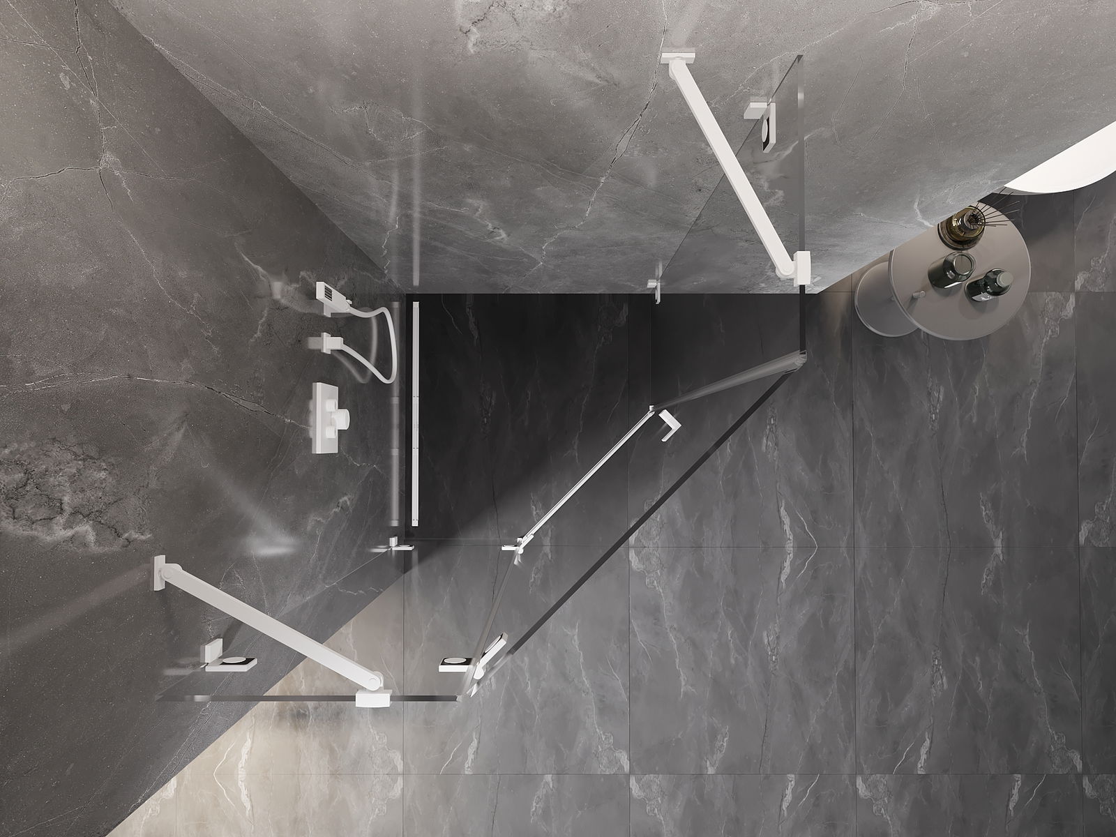 Poręczny i wygodny uchwyt został wykonany z trwałego i odpornego metalu. Modny kształt w połączeniu z wykończeniem dopasowanym do koloru profili nadaje całości nowoczesnego i stylowego wyglądu, podkreślając estetykę każdej łazienki.