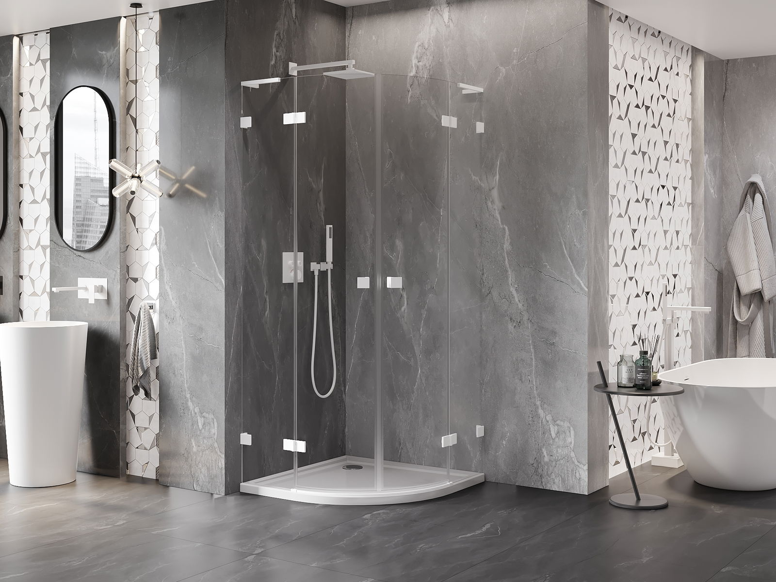Klamry i zawiasy zostały wykonane z bardzo trwałego mosiądzu, a dodatkowo tworzą zlicowaną taflę szkła. Jest to doskonały wybór, który łączy elegancję, trwałość i nowoczesny design. Dzięki takim rozwiązaniom prysznic zyskuje na estetyce, a jednocześnie ułatwiają utrzymanie czystości.