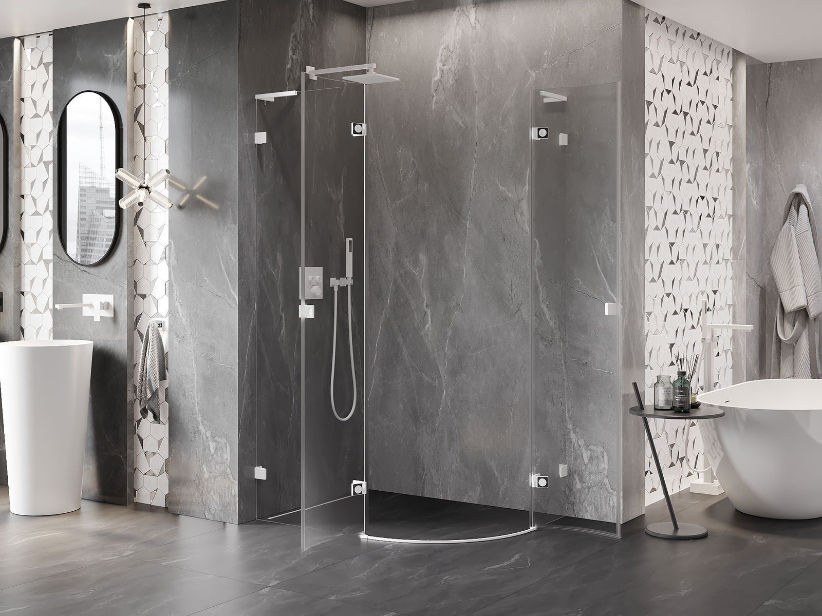 Klamry i zawiasy zostały wykonane z bardzo trwałego mosiądzu, a dodatkowo tworzą zlicowaną taflę szkła. Jest to doskonały wybór, który łączy elegancję, trwałość i nowoczesny design. Dzięki takim rozwiązaniom prysznic zyskuje na estetyce, a jednocześnie ułatwiają utrzymanie czystości.