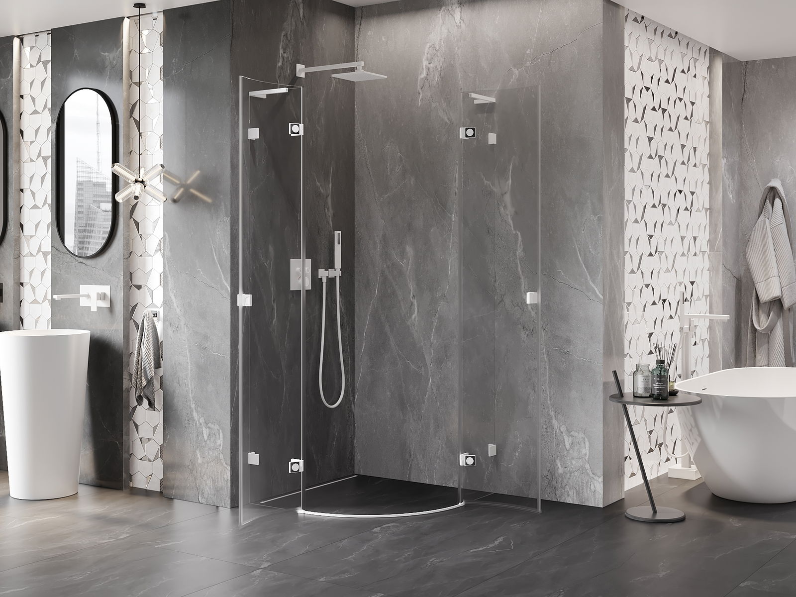 Klamry i zawiasy zostały wykonane z bardzo trwałego mosiądzu, a dodatkowo tworzą zlicowaną taflę szkła. Jest to doskonały wybór, który łączy elegancję, trwałość i nowoczesny design. Dzięki takim rozwiązaniom prysznic zyskuje na estetyce, a jednocześnie ułatwiają utrzymanie czystości.