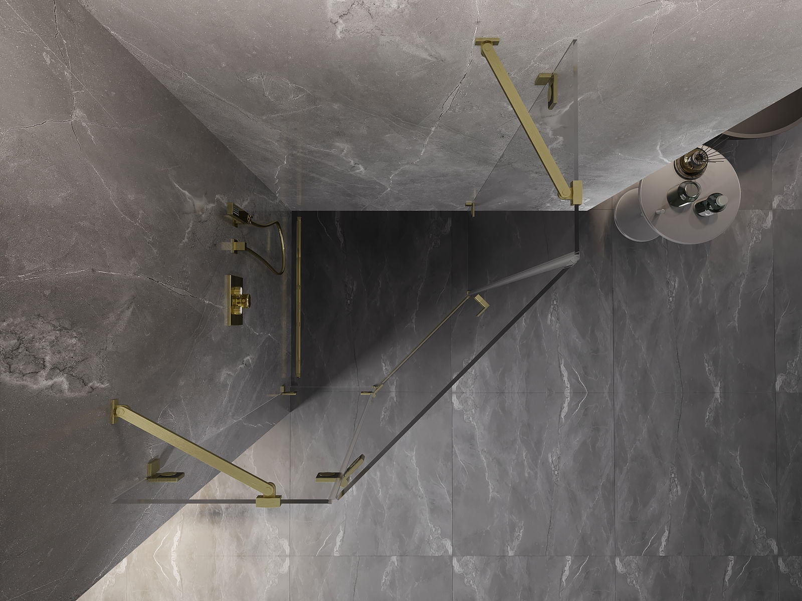 Mexen Lunar kabina prysznicowa pięciokątna uchylna lewa 100 x 100 cm, transparent, złota szczotkowana - 831-100L-100P-55-00-L