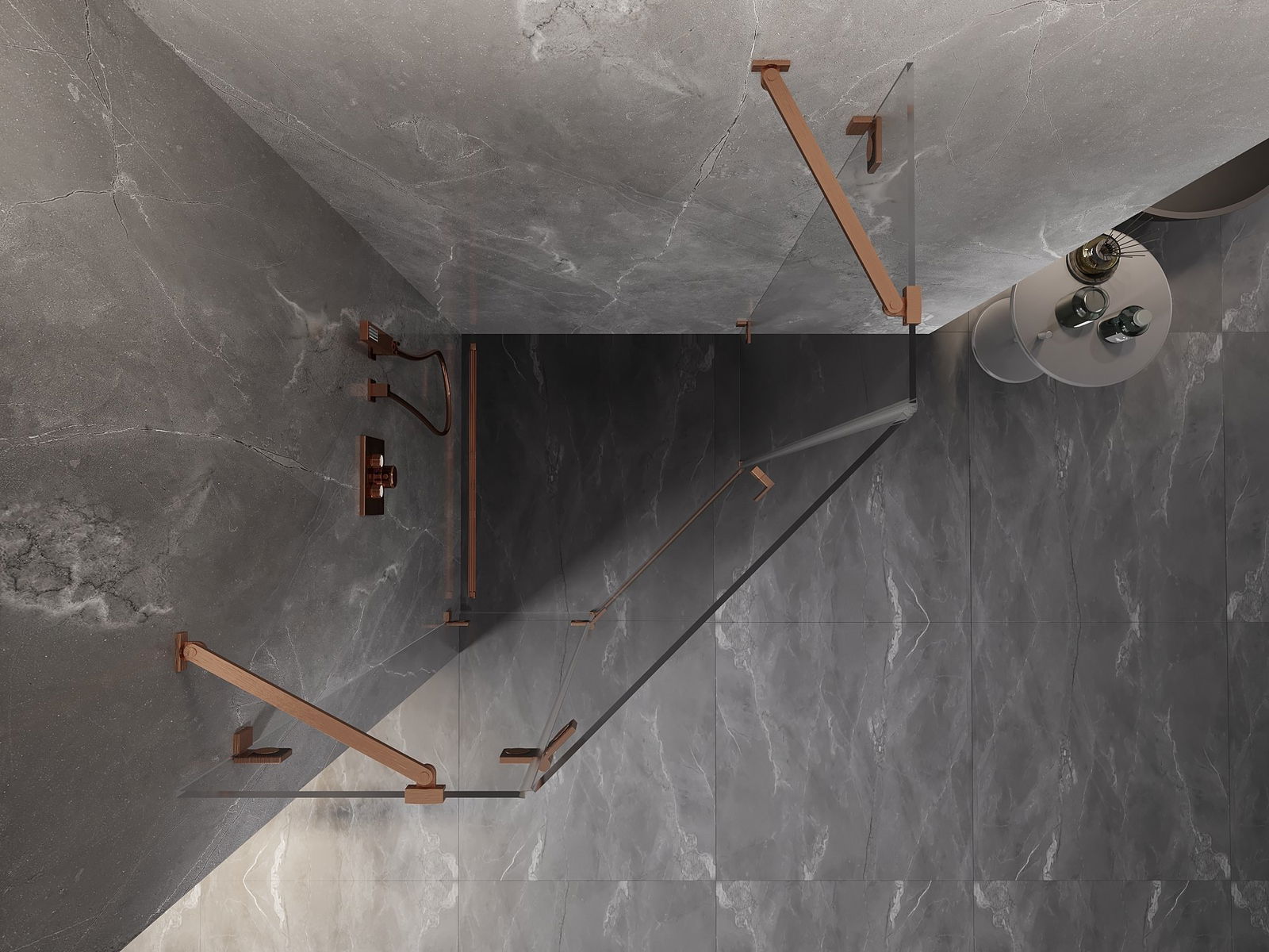 Mexen Lunar kabina prysznicowa pięciokątna uchylna lewa 100 x 100 cm, transparent, miedź szczotkowana - 831-100L-100P-65-00-L