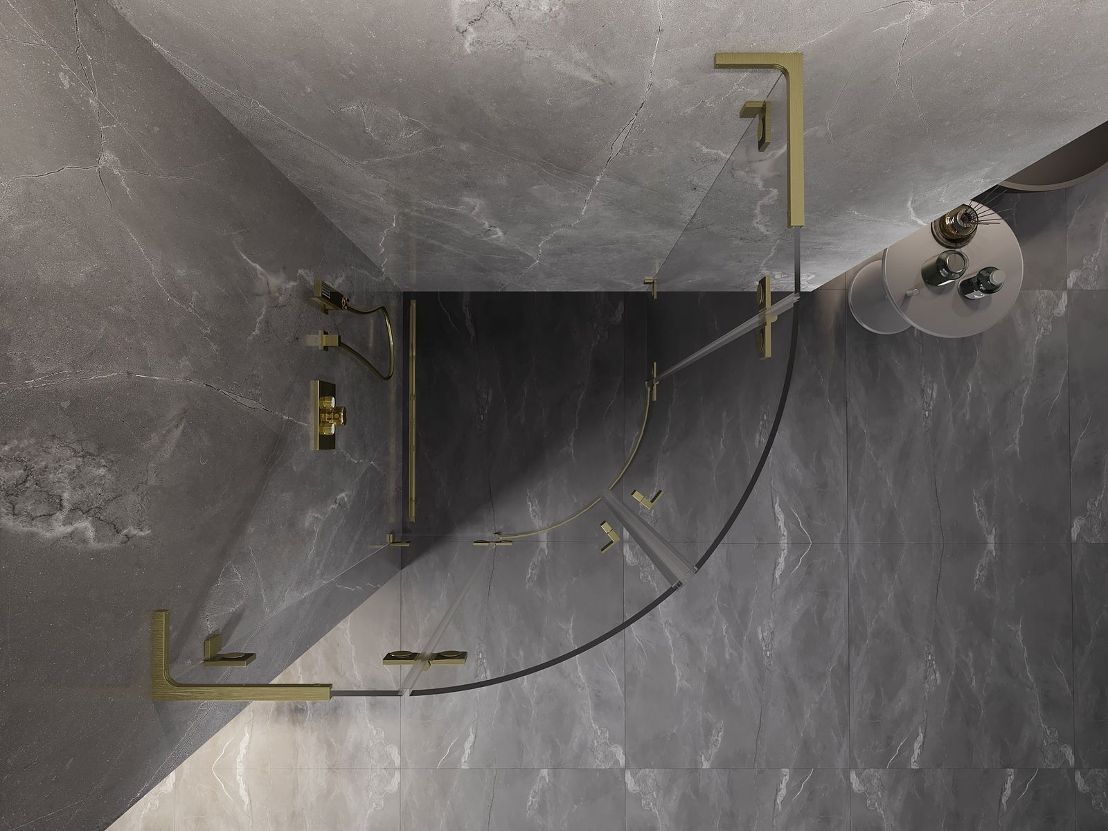Mexen Lunar L kabina prysznicowa półokrągła uchylna 80 x 80 cm, transparent, złota szczotkowana - 833L-080L-080P-55-00