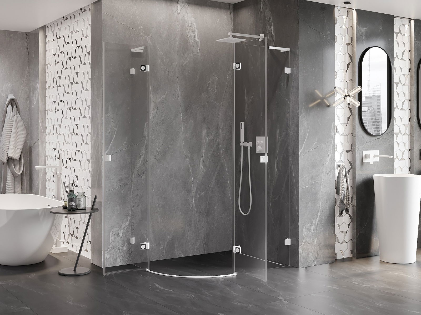 Poręczny i wygodny uchwyt został wykonany z trwałego i odpornego metalu. Modny kształt w połączeniu z wykończeniem dopasowanym do koloru profili nadaje całości nowoczesnego i stylowego wyglądu, podkreślając estetykę każdej łazienki.