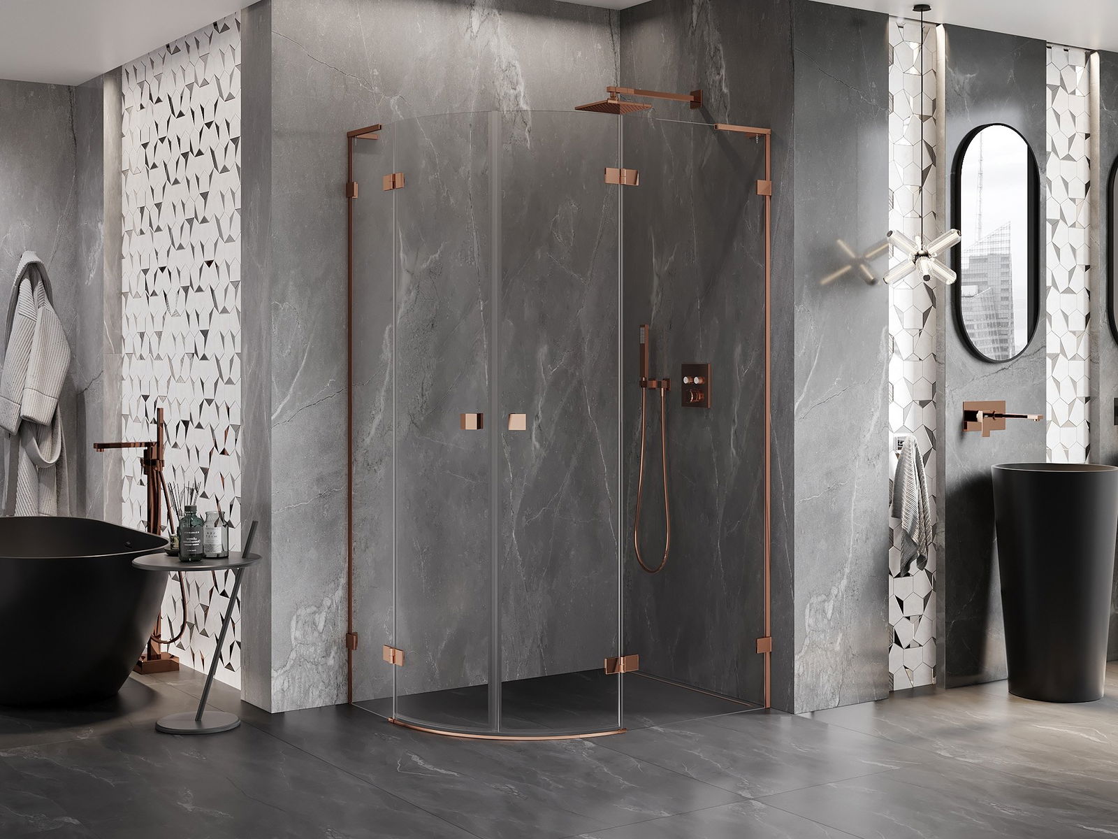 Poręczny i wygodny uchwyt został wykonany z trwałego i odpornego metalu. Modny kształt w połączeniu z wykończeniem dopasowanym do koloru profili nadaje całości nowoczesnego i stylowego wyglądu, podkreślając estetykę każdej łazienki.