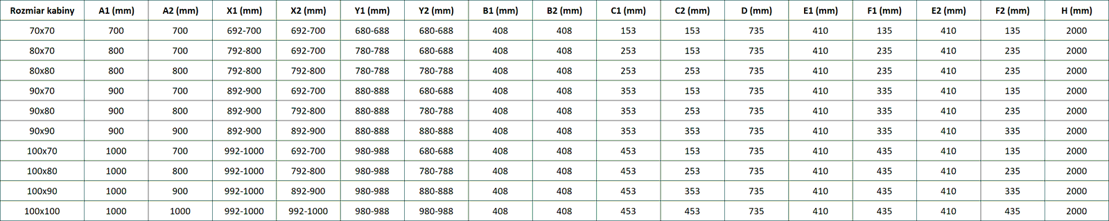 Rozmiar: 100x90 cm (drzwi prawe 100 cm, drzwi lewe 90 cm)