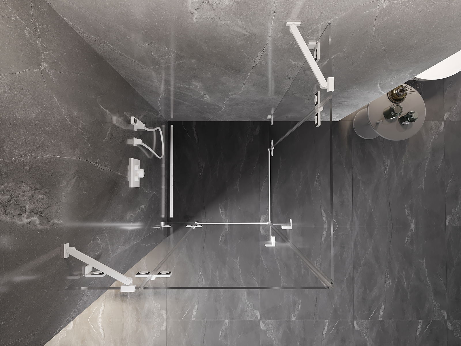 Klamry i zawiasy zostały wykonane z bardzo trwałego mosiądzu, a dodatkowo tworzą zlicowaną taflę szkła. Jest to doskonały wybór, który łączy elegancję, trwałość i nowoczesny design. Dzięki takim rozwiązaniom prysznic zyskuje na estetyce, a jednocześnie ułatwiają utrzymanie czystości.
