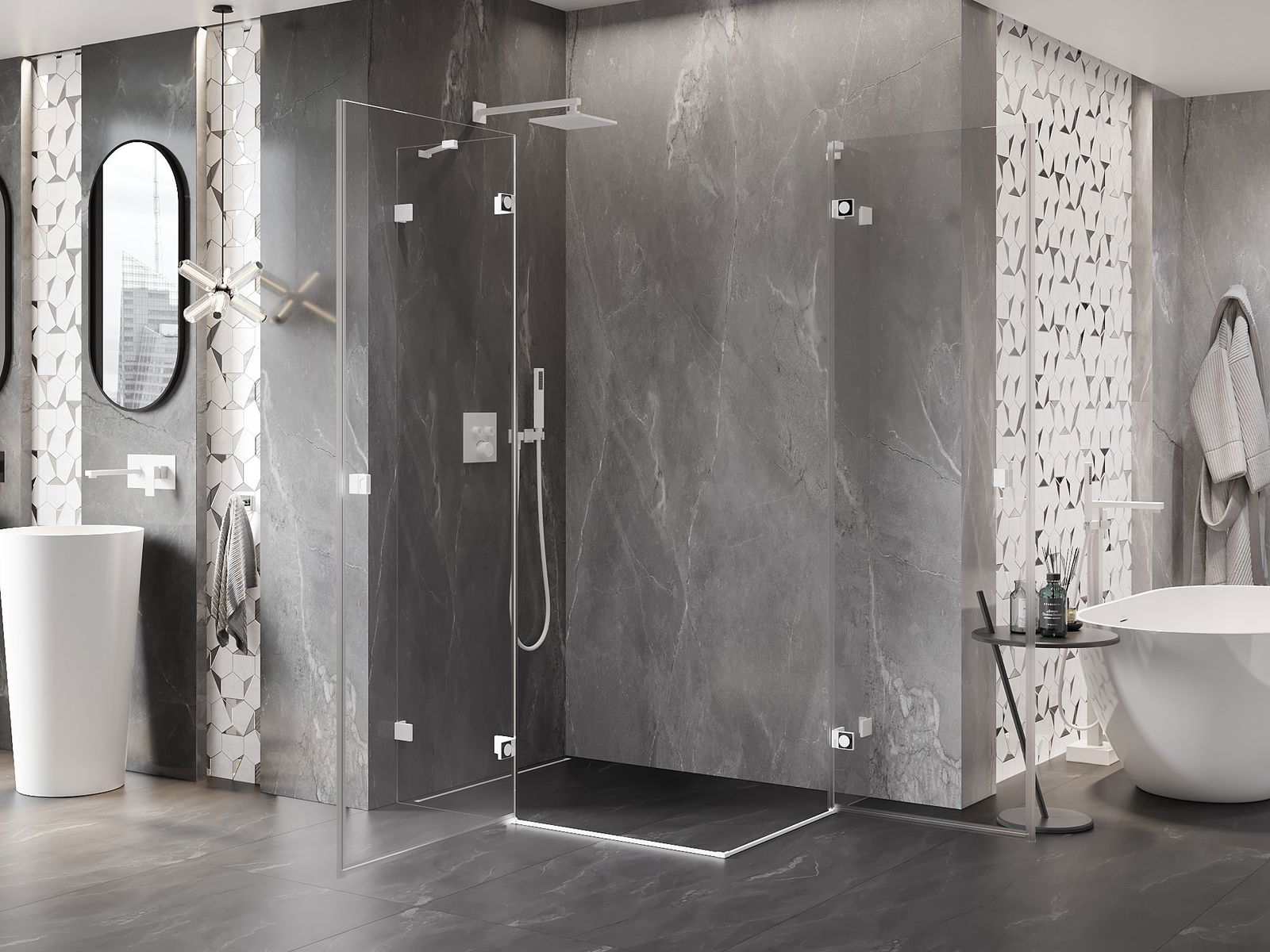 Klamry i zawiasy zostały wykonane z bardzo trwałego mosiądzu, a dodatkowo tworzą zlicowaną taflę szkła. Jest to doskonały wybór, który łączy elegancję, trwałość i nowoczesny design. Dzięki takim rozwiązaniom prysznic zyskuje na estetyce, a jednocześnie ułatwiają utrzymanie czystości.