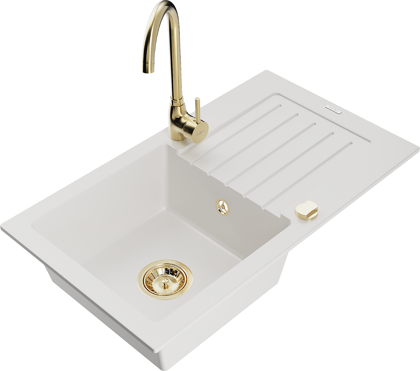 Mexen Pablo zlewozmywak granitowy 1-komorowy z ociekaczem i baterią kuchenną Telma, biały - 6510-20-670200-50