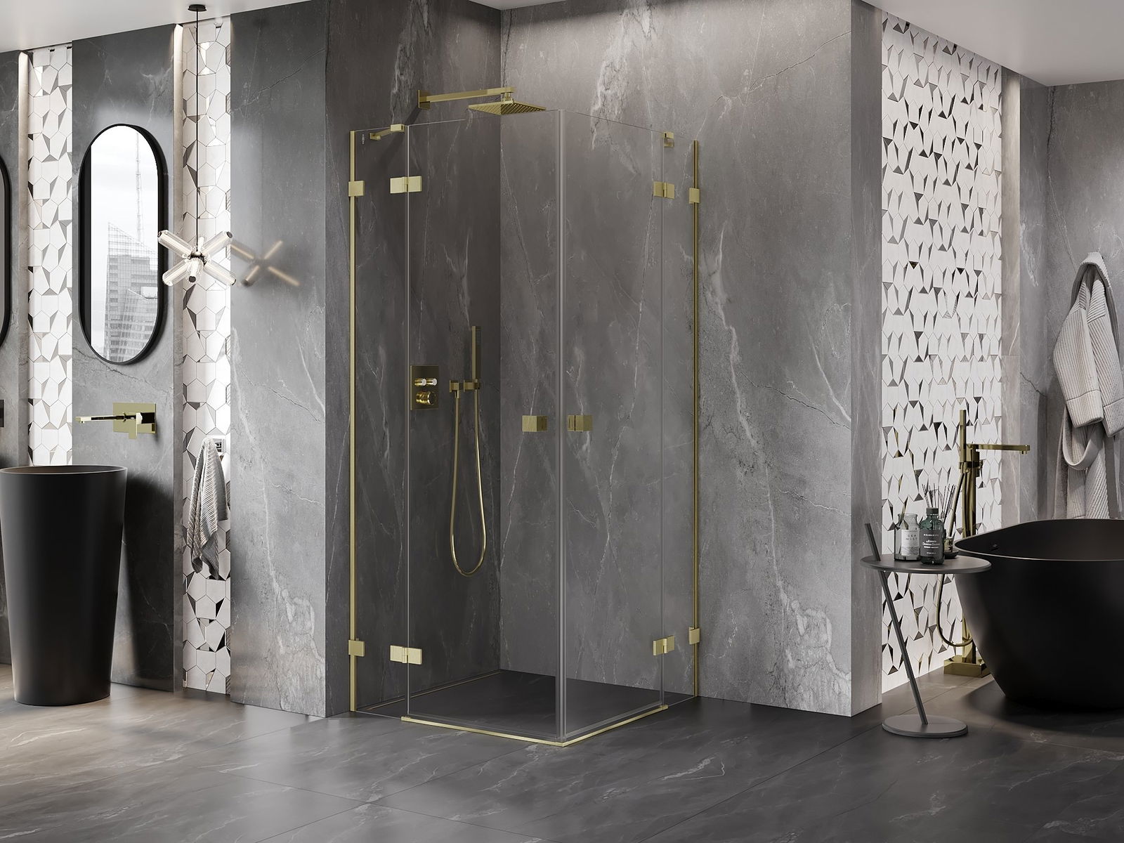 Klamry i zawiasy zostały wykonane z bardzo trwałego mosiądzu, a dodatkowo tworzą zlicowaną taflę szkła. Jest to doskonały wybór, który łączy elegancję, trwałość i nowoczesny design. Dzięki takim rozwiązaniom prysznic zyskuje na estetyce, a jednocześnie ułatwiają utrzymanie czystości.