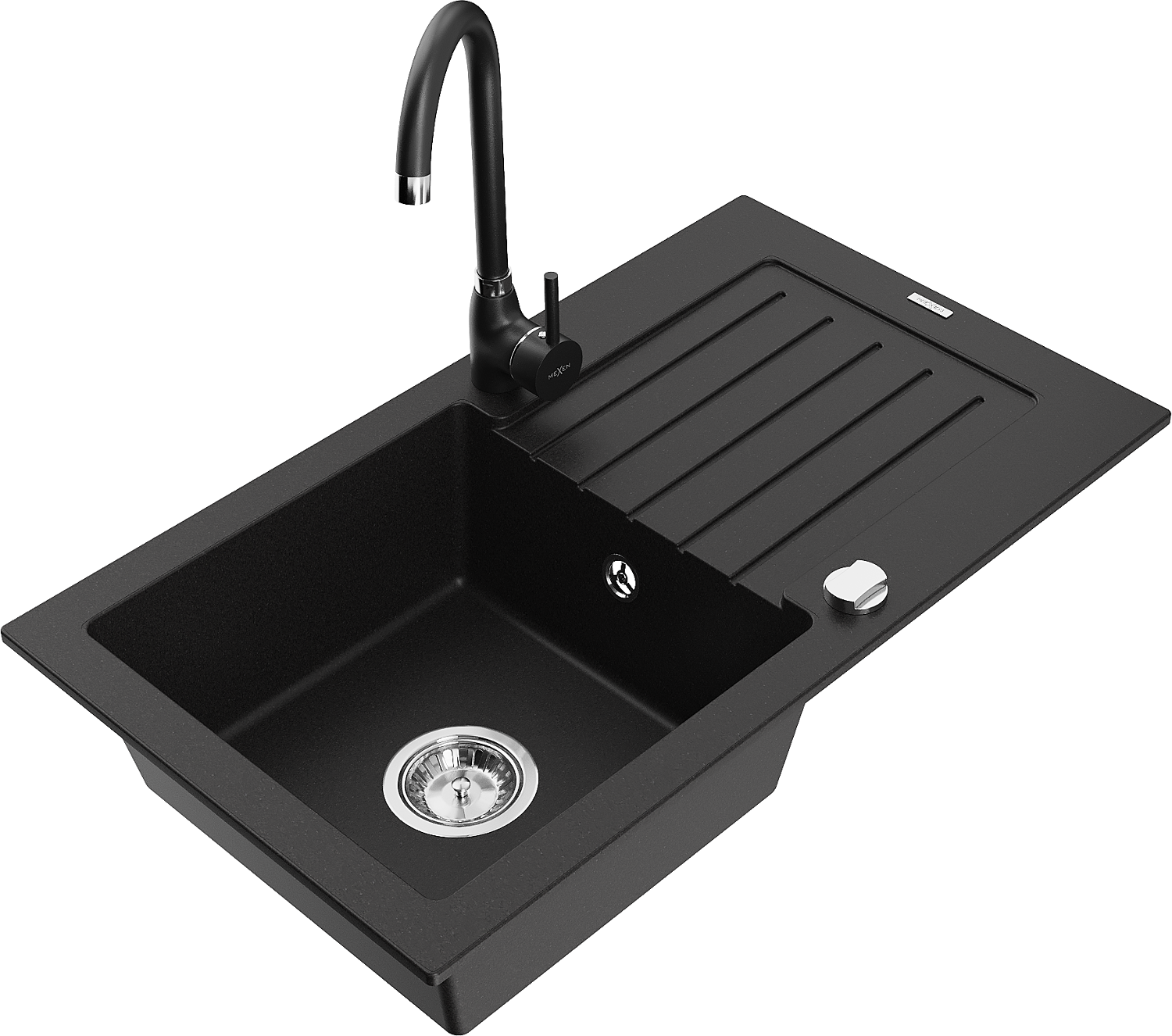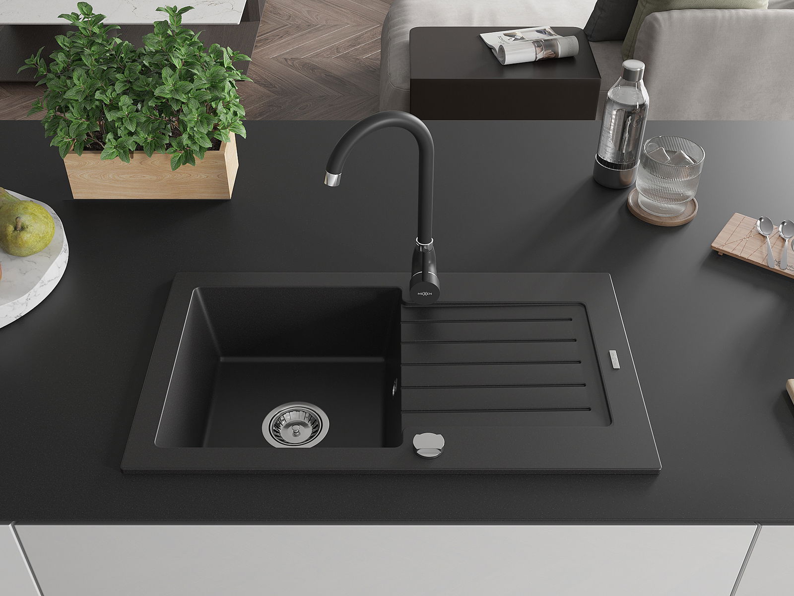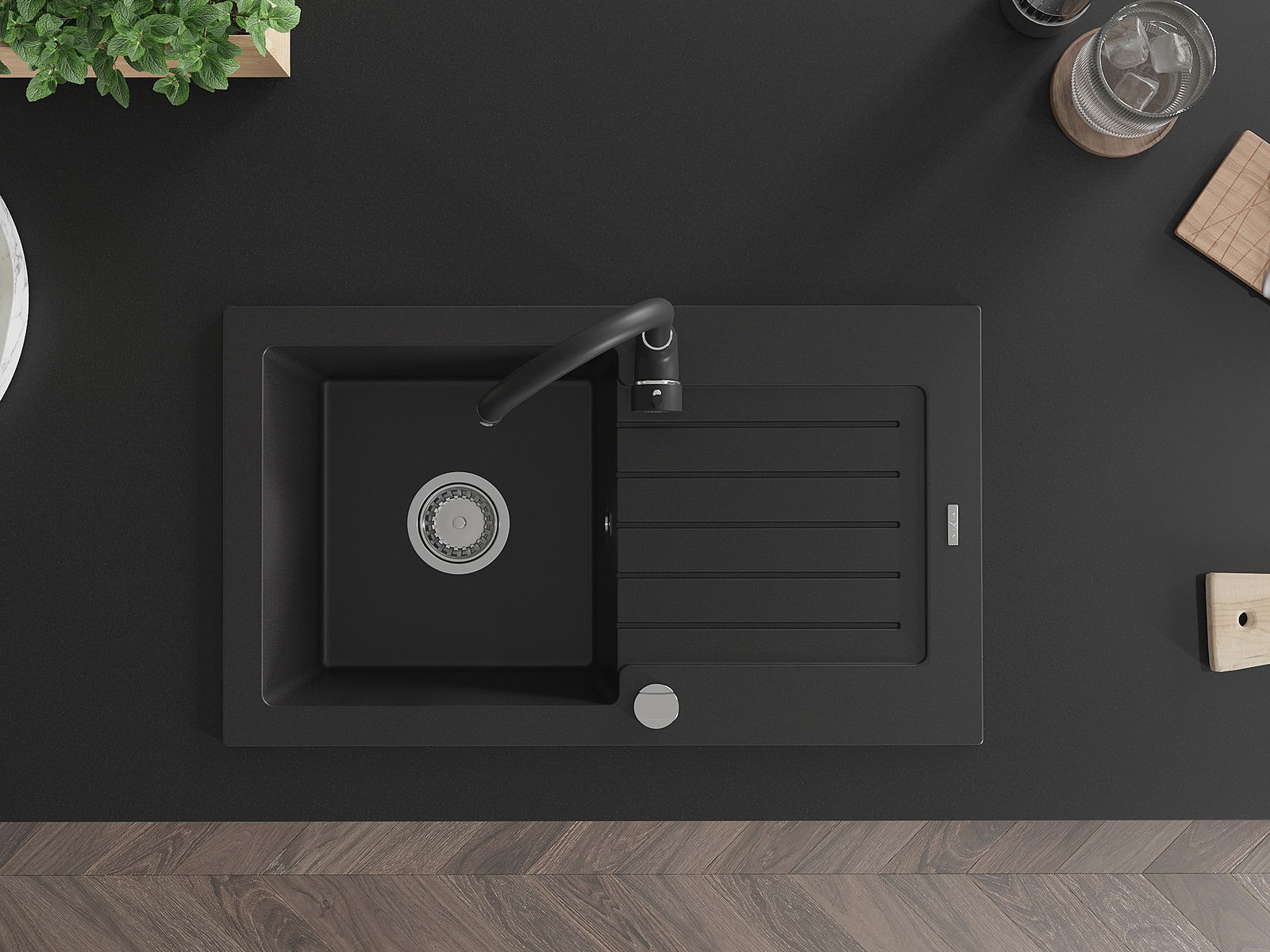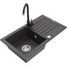 Mexen Pablo zlewozmywak granitowy 1-komorowy z ociekaczem i baterią kuchenną Telma, czarny - 6510-77-670200-70
