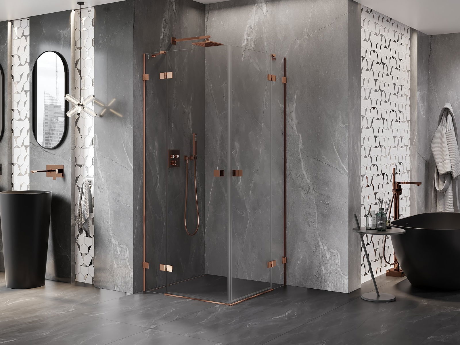 Mexen Lunar Duo kabina prysznicowa uchylna 100 x 100 cm, transparent, różowe złoto - 834-100L-100P-60-00