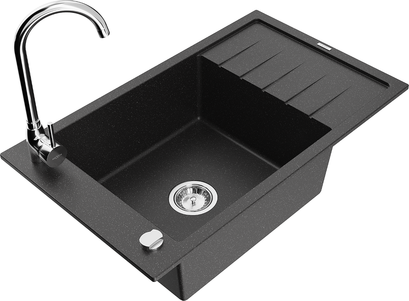 Mexen Elias zlewozmywak granitowy 1-komorowy z ociekaczem i baterią kuchenną Telma, czarny/srebrny - 6511-73-670200-00