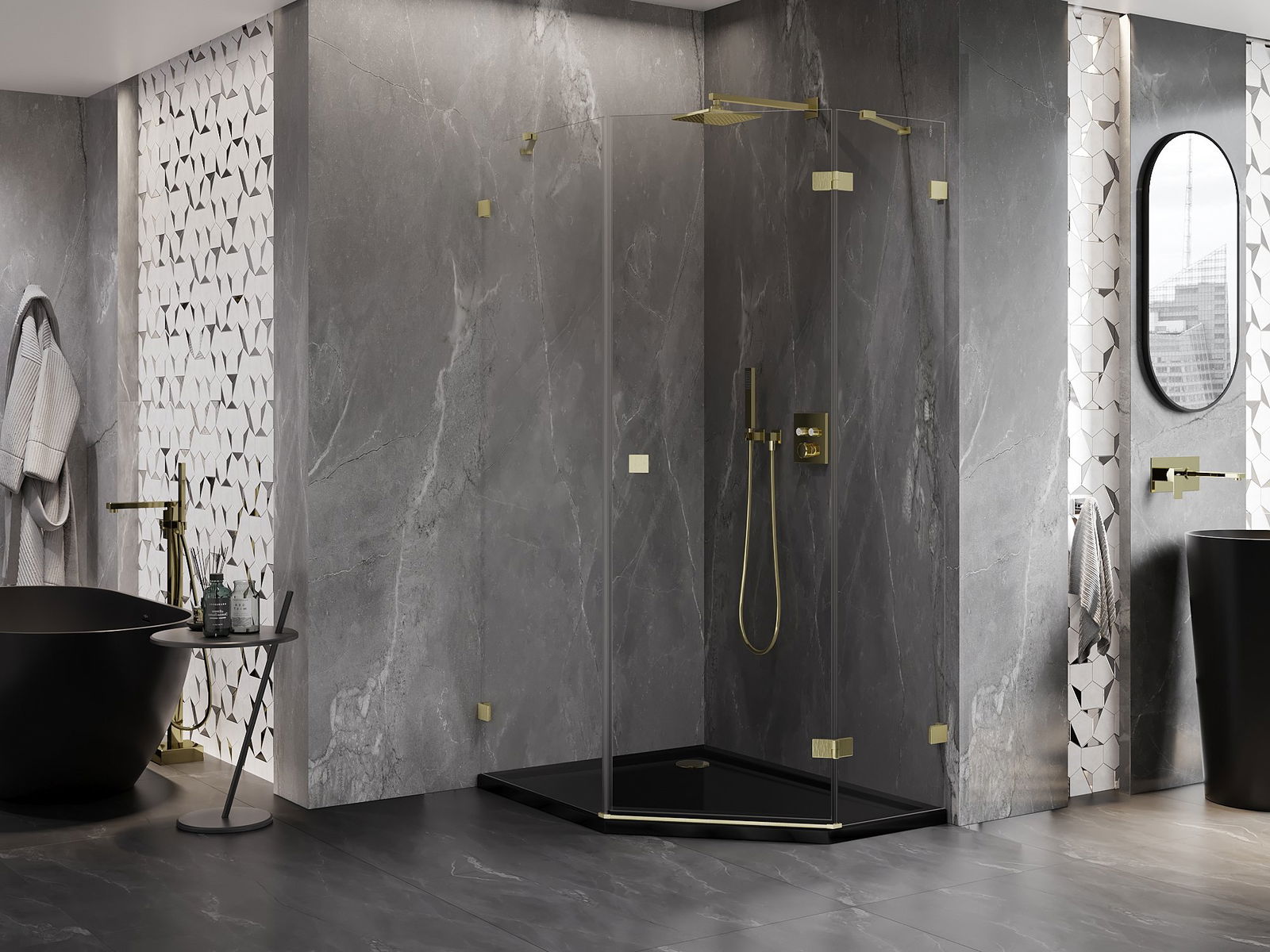 Mexen Lunar kabina prysznicowa pięciokątna uchylna prawa 80 x 100 cm, transparent, złota szczotkowana - 831-080P-100L-55-00-P