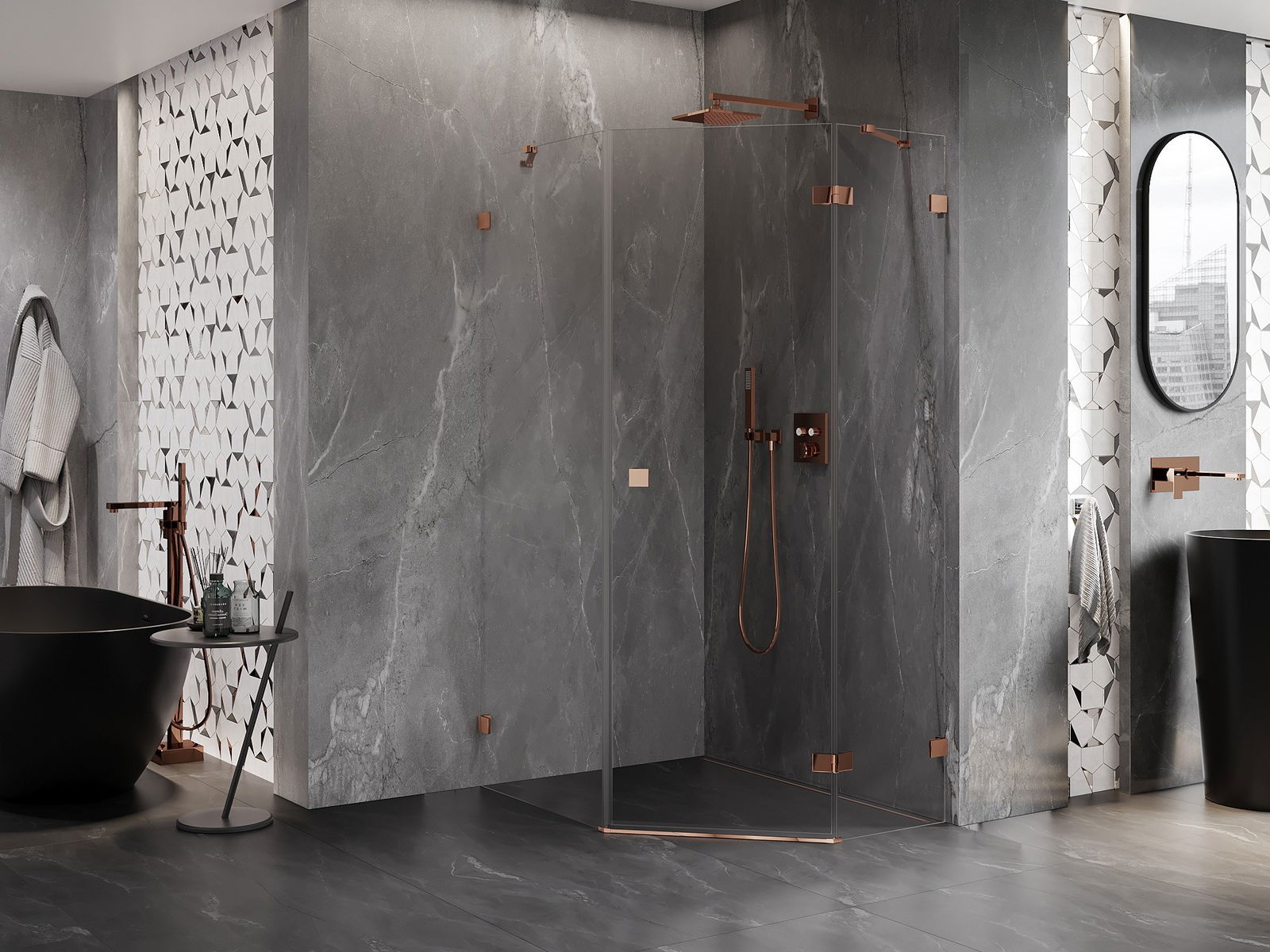 Mexen Lunar kabina prysznicowa pięciokątna uchylna prawa 90 x 100 cm, transparent, różowe złoto - 831-090P-100L-60-00-P