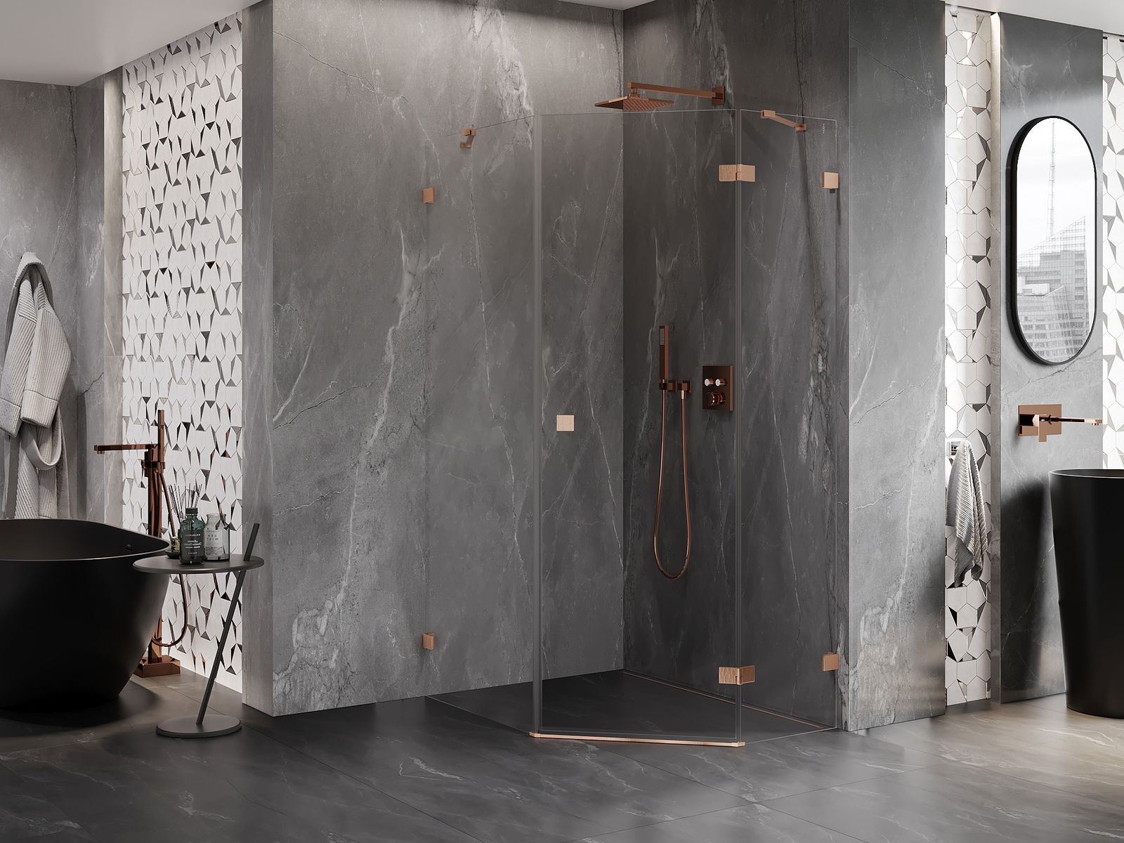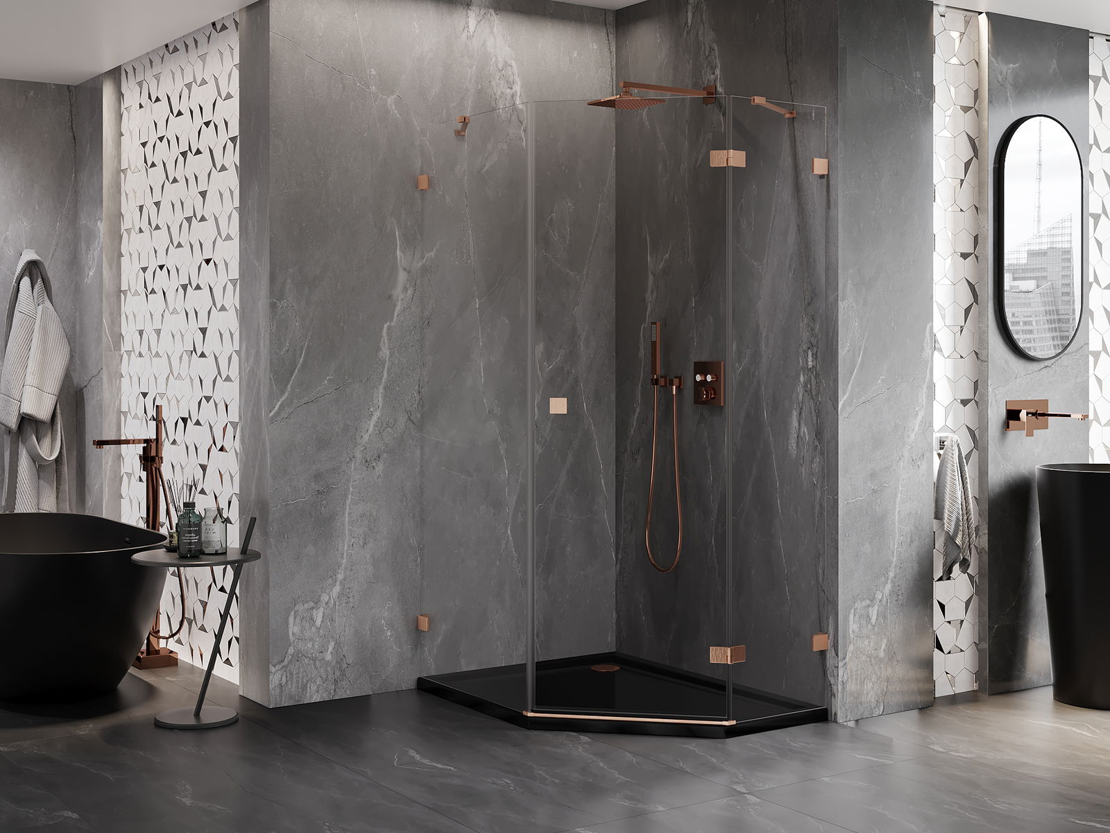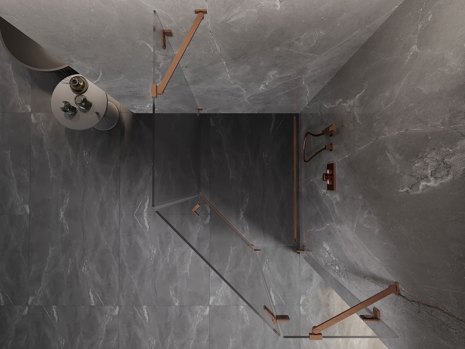 Mexen Lunar kabina prysznicowa pięciokątna uchylna prawa 80 x 90 cm, transparent, miedź szczotkowana - 831-080P-090L-65-00-P