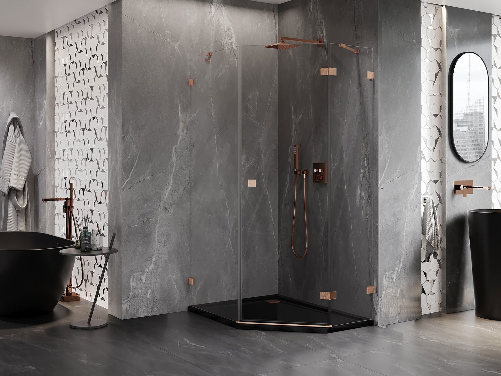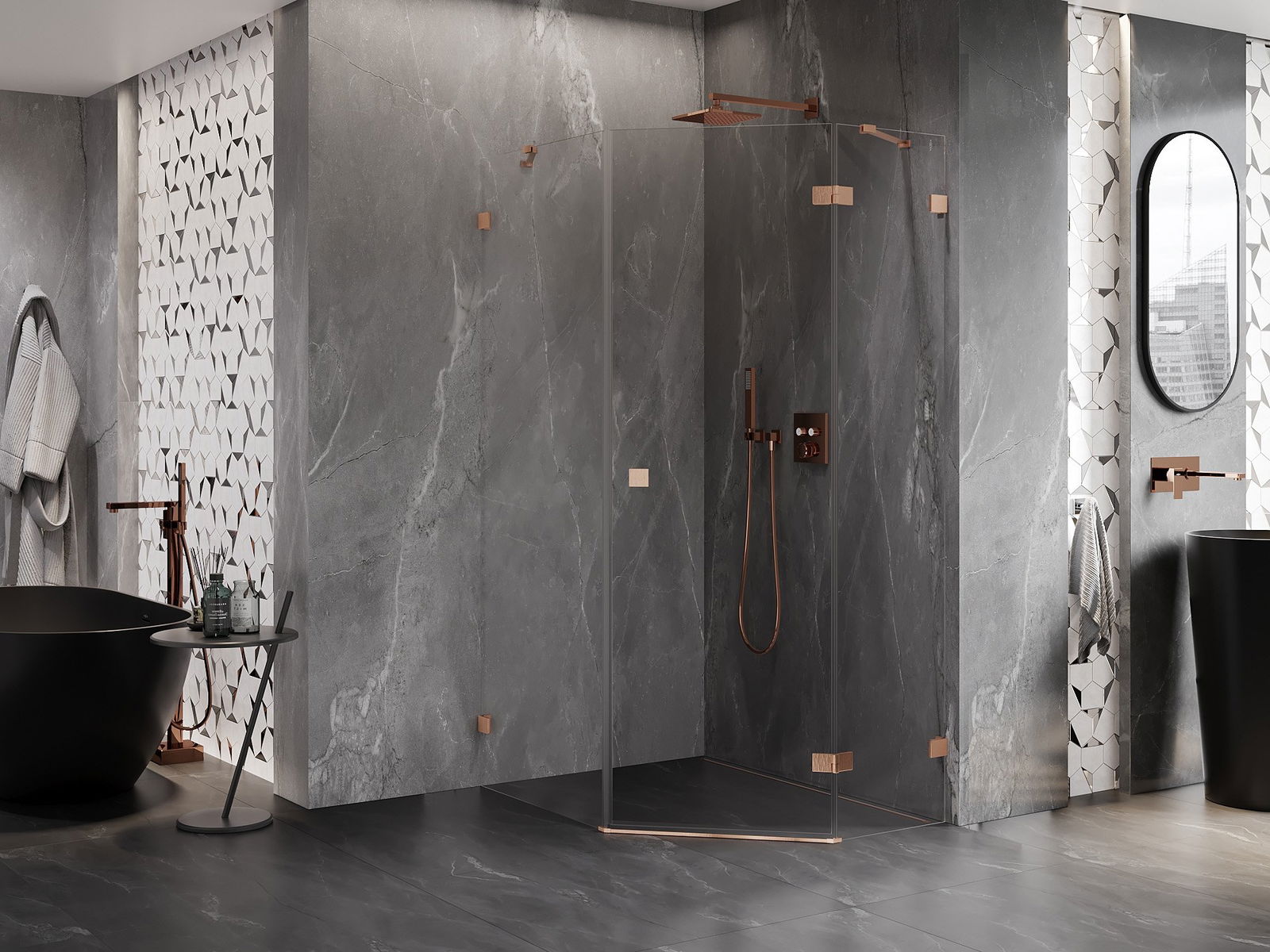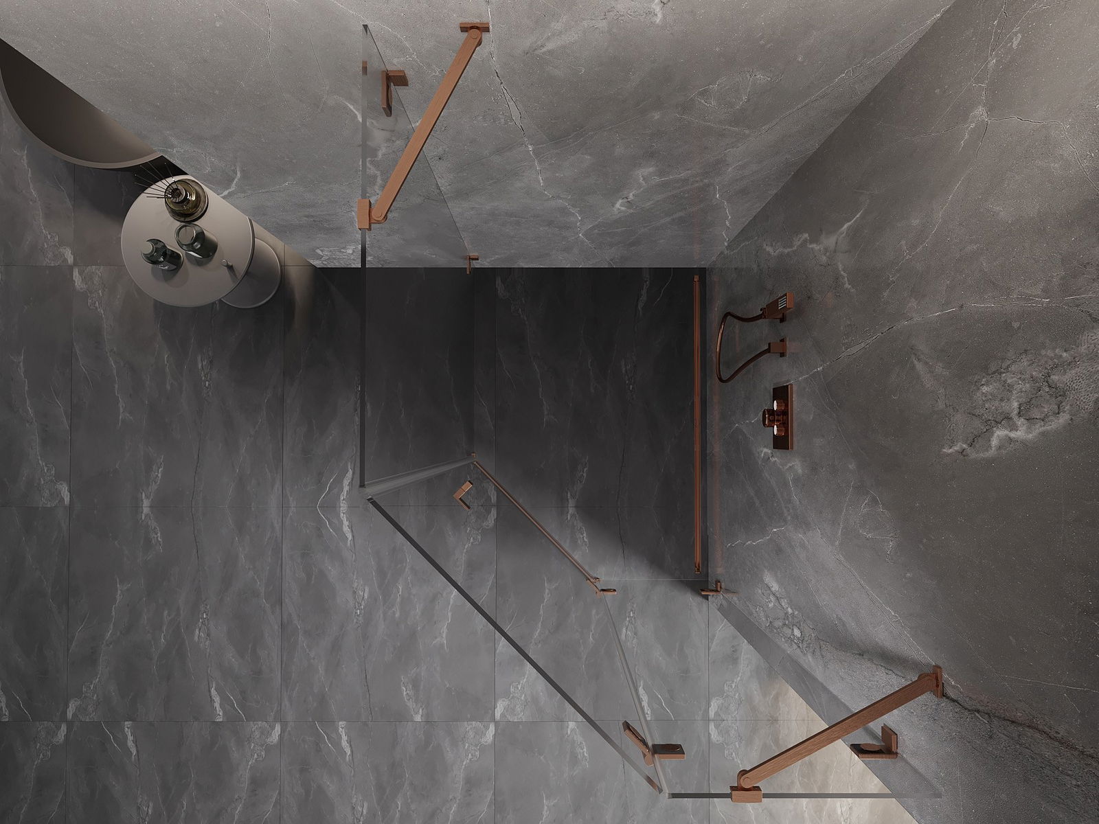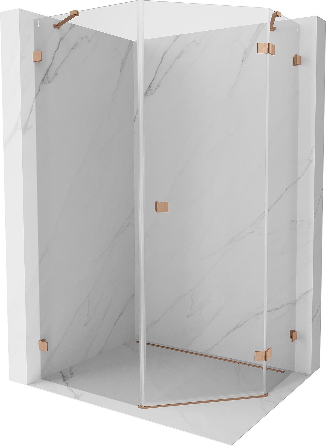 Mexen Lunar kabina prysznicowa pięciokątna uchylna prawa 90 x 100 cm, transparent, miedź szczotkowana - 831-090P-100L-65-00-P