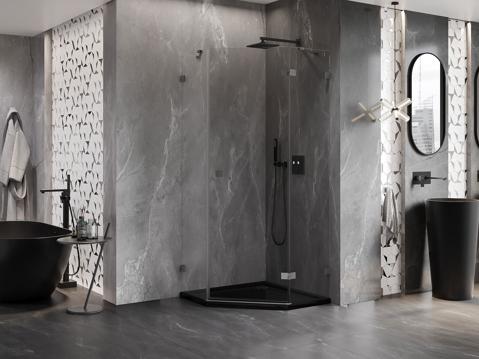Mexen Lunar kabina prysznicowa pięciokątna uchylna prawa 100 x 100 cm transparent, gun gray szczotkowany - 831-100P-100L-66-00-P
