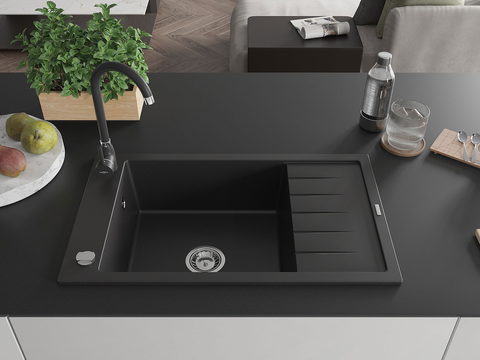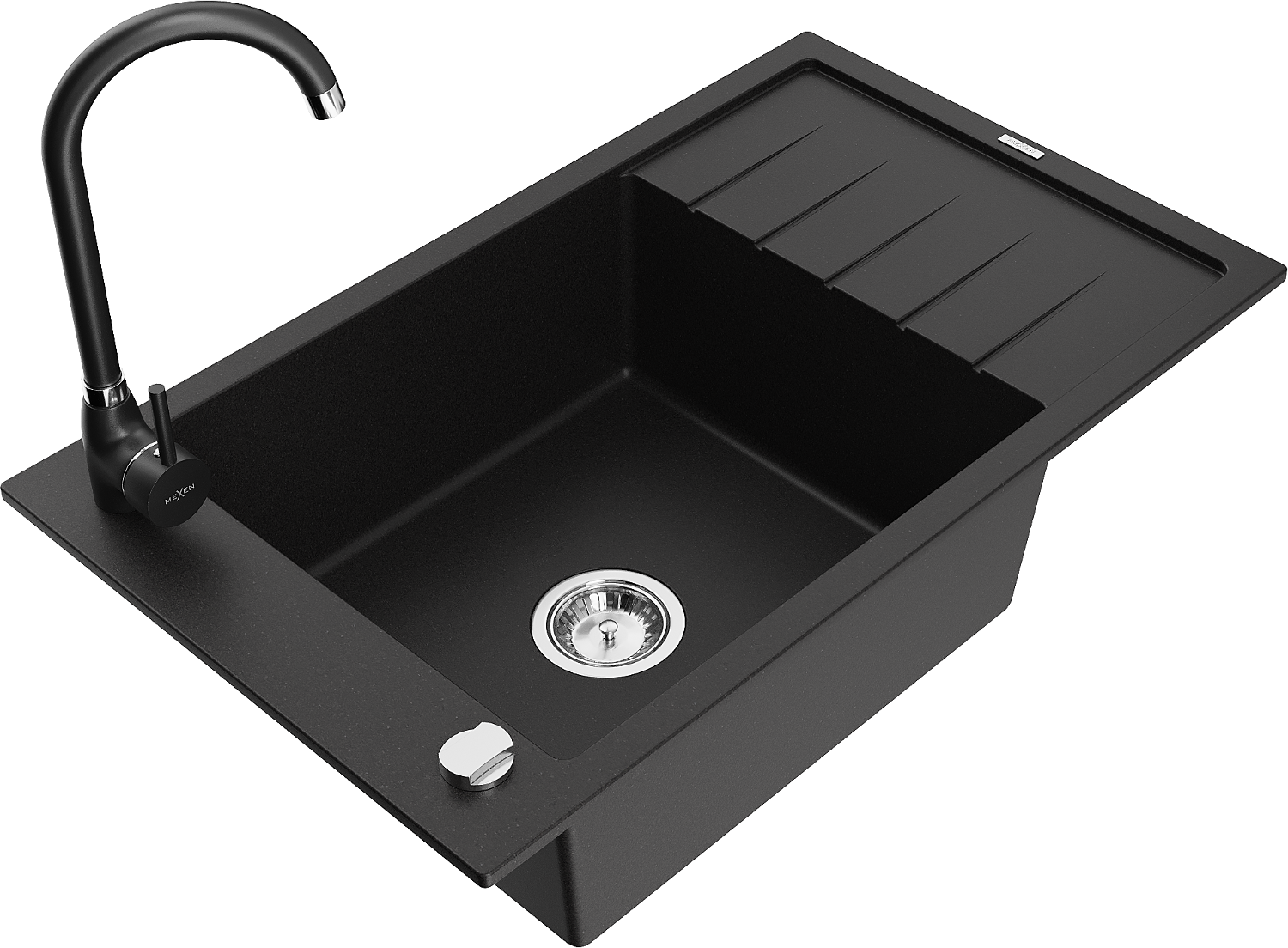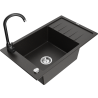 Mexen Elias zlewozmywak granitowy 1-komorowy z ociekaczem i baterią kuchenną Telma, czarny - 6511-77-670200-70