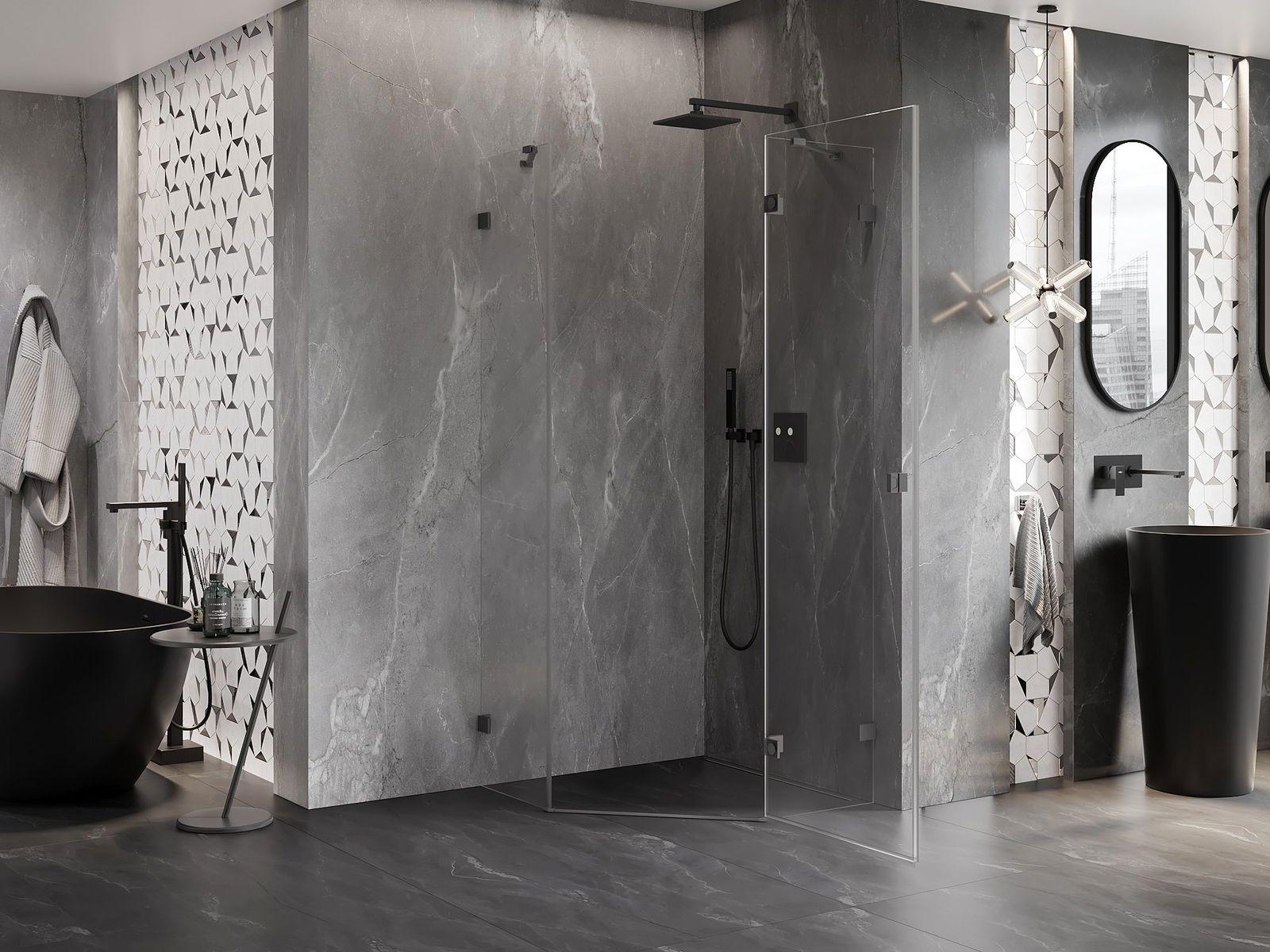 Klamry i zawiasy zostały wykonane z bardzo trwałego mosiądzu, a dodatkowo tworzą zlicowaną taflę szkła. Jest to doskonały wybór, który łączy elegancję, trwałość i nowoczesny design. Dzięki takim rozwiązaniom prysznic zyskuje na estetyce, a jednocześnie ułatwiają utrzymanie czystości.