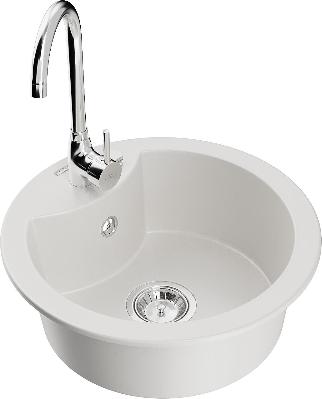 Mexen Diego zlewozmywak granitowy 1-komorowy z baterią kuchenną Telma, biały - 6512-20-670200-00