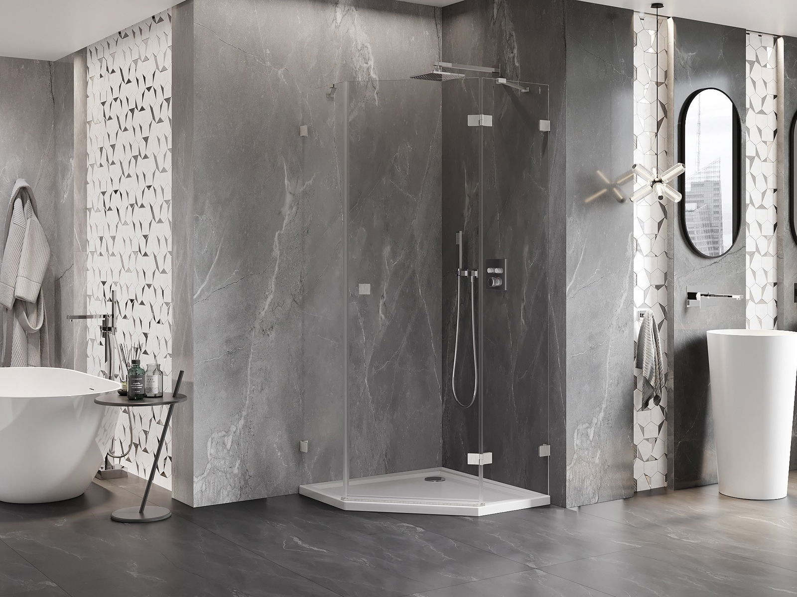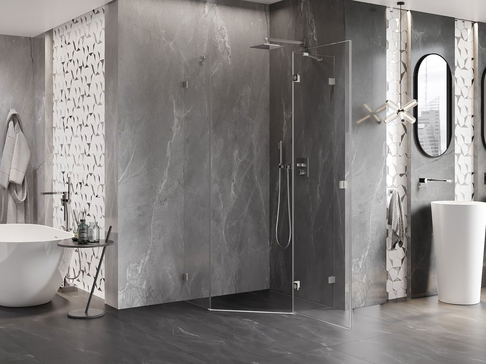 Poręczny i wygodny uchwyt został wykonany z trwałego i odpornego metalu. Modny kształt w połączeniu z wykończeniem dopasowanym do koloru profili nadaje całości nowoczesnego i stylowego wyglądu, podkreślając estetykę każdej łazienki.