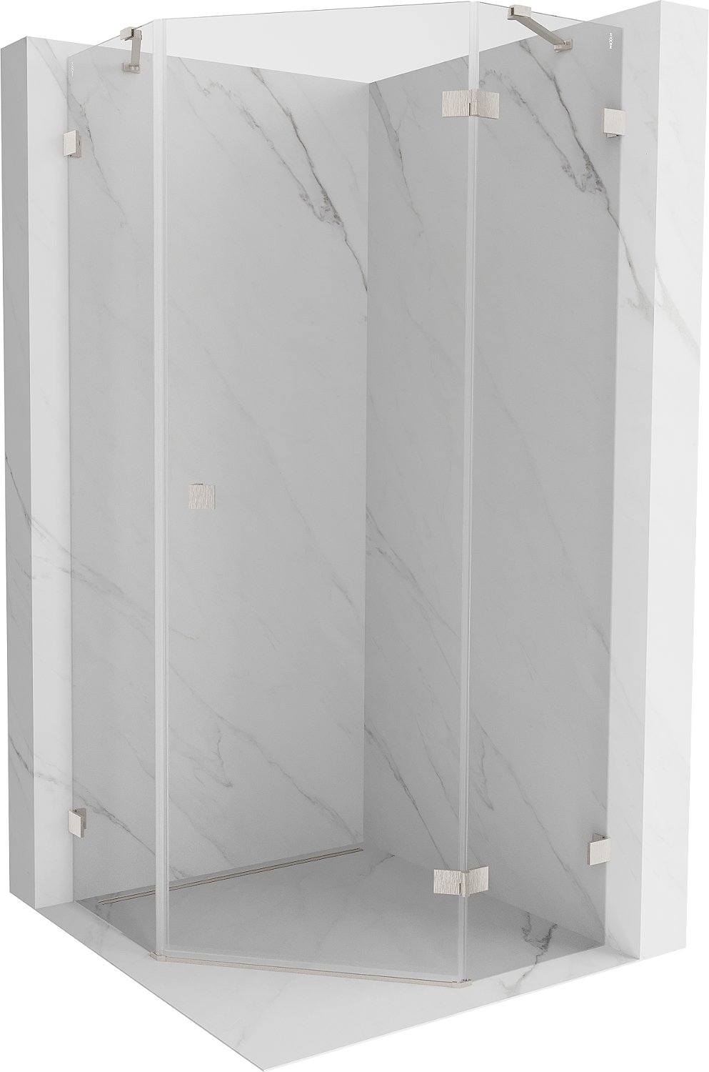Mexen Lunar kabina prysznicowa pięciokątna uchylna prawa 80 x 80 cm, transparent, nikiel szczotkowany - 831-080P-080L-97-00-P