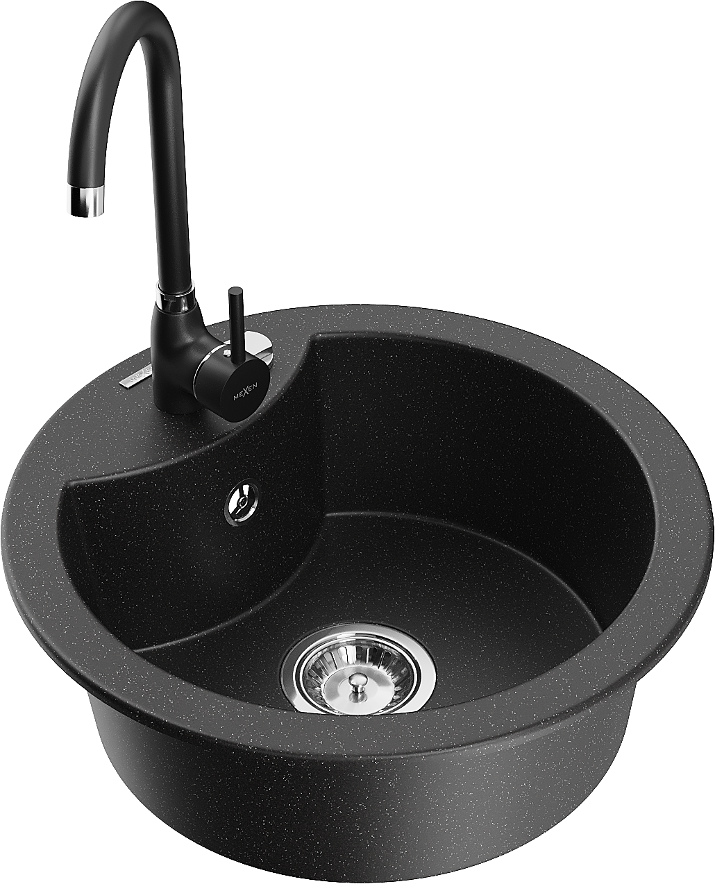 Mexen Diego zlewozmywak granitowy 1-komorowy z baterią kuchenną Telma, czarny/srebrny - 6512-73-670200-70
