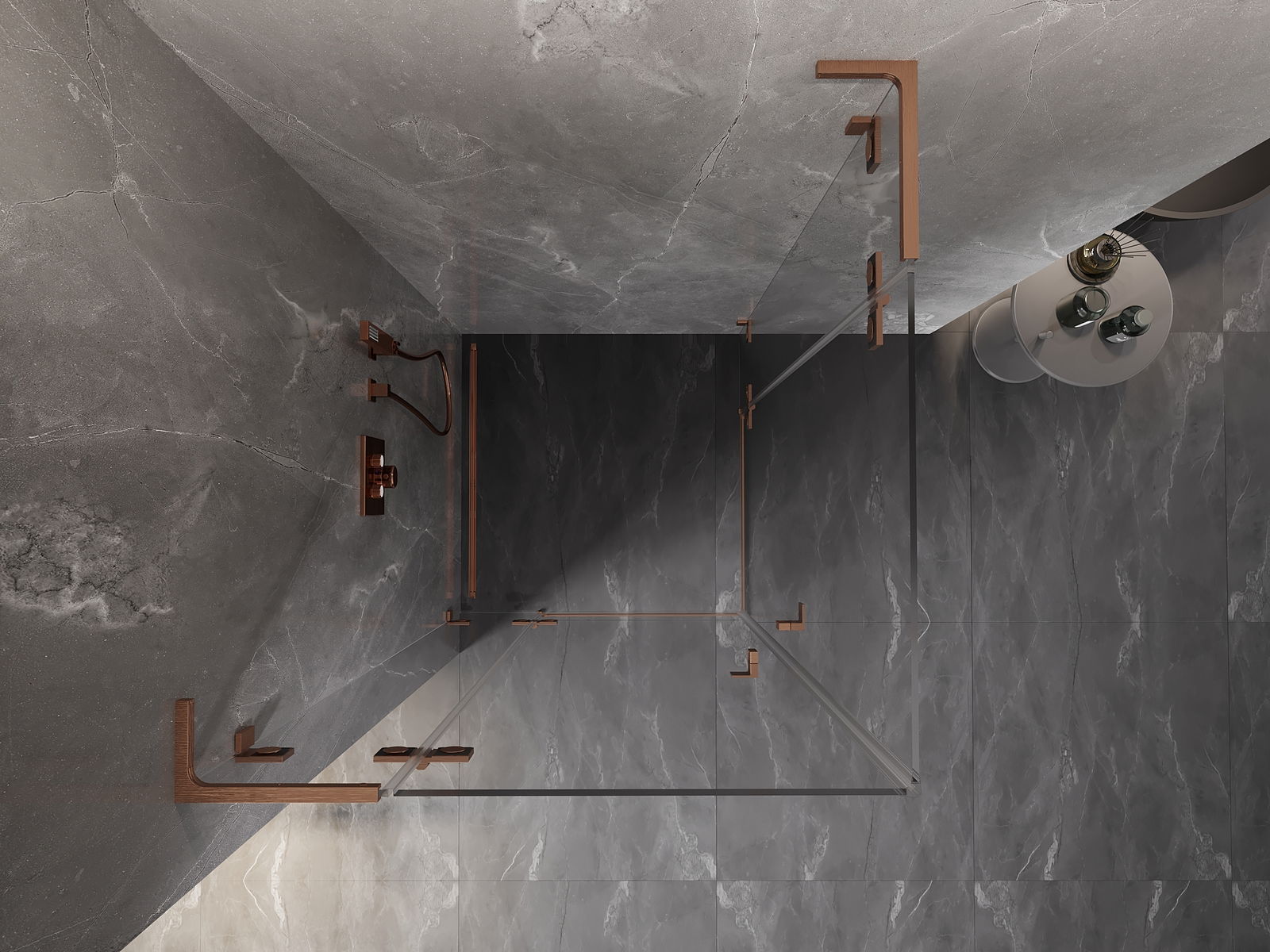 Mexen Lunar L Duo kabina prysznicowa uchylna 70 x 70 cm, transparent, miedź szczotkowana - 834L-070L-070P-65-00