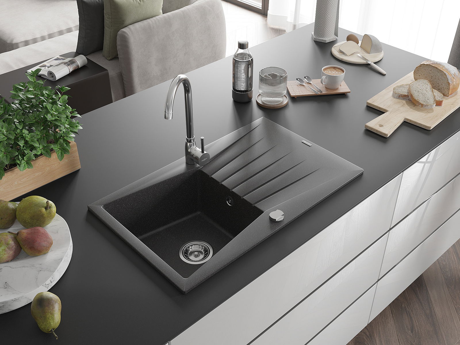 Dobrze zabezpieczona powierzchnia zlewozmywaka hamuje wnikanie zabrudzeń do jego wewnętrznych struktur. Dzięki temu utrzymanie zlewu w czystości jest jeszcze łatwiejsze, a jego powierzchnia zachowuje swoją estetykę na dłużej.