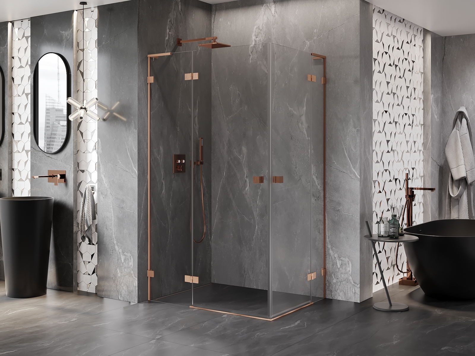 Mexen Lunar L Duo kabina prysznicowa uchylna lewa 110 x 80 cm, transparent, miedź szczotkowana - 834L-110L-080P-65-00