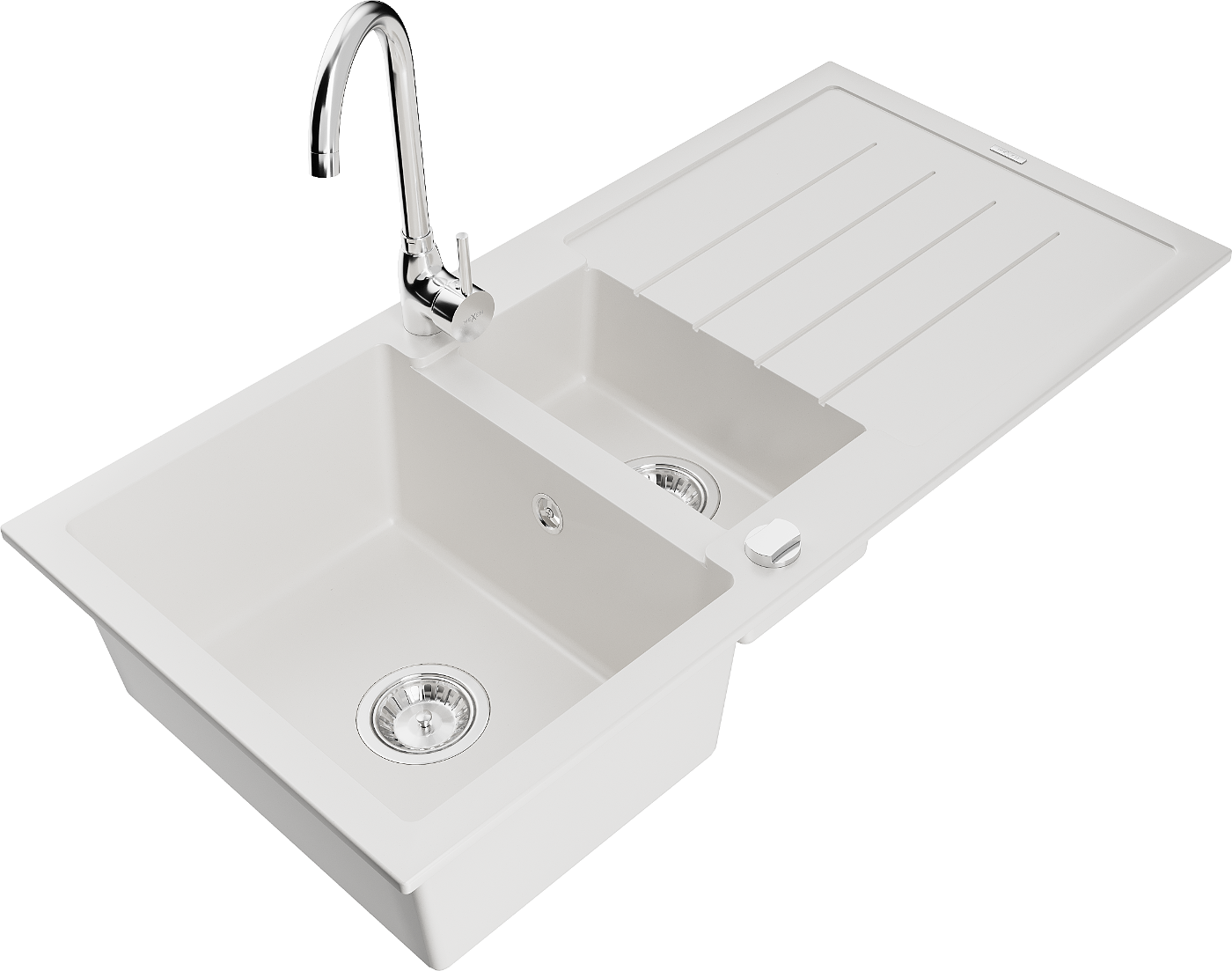 Mexen Andres zlewozmywak granitowy 1,5-komorowy z ociekaczem i baterią kuchenną Telma, biały - 6515-20-670200-00