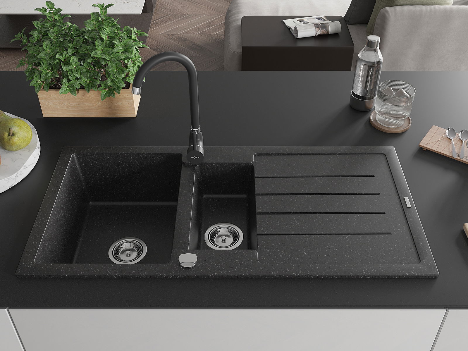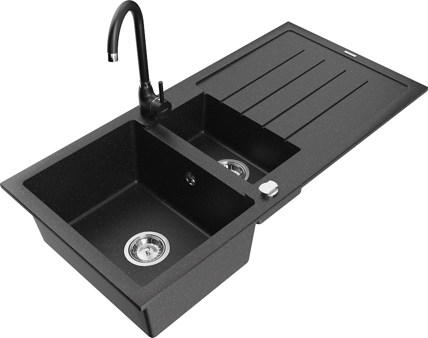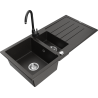 Mexen Andres zlewozmywak granitowy 1,5-komorowy z ociekaczem i baterią kuchenną Telma, czarny/srebrny - 6515-73-670200-70