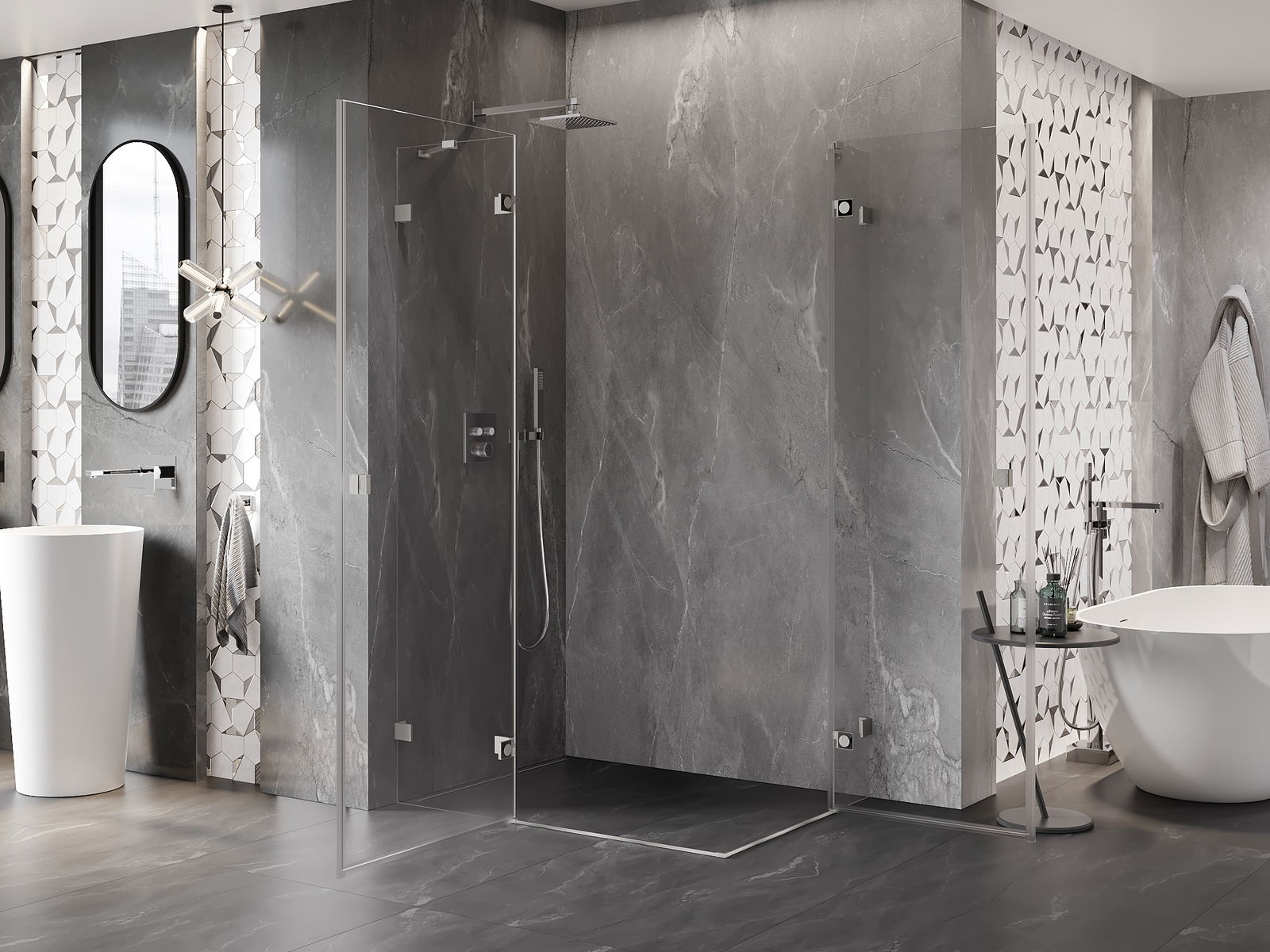 Poręczny i wygodny uchwyt został wykonany z trwałego i odpornego metalu. Modny kształt w połączeniu z wykończeniem dopasowanym do koloru profili nadaje całości nowoczesnego i stylowego wyglądu, podkreślając estetykę każdej łazienki.