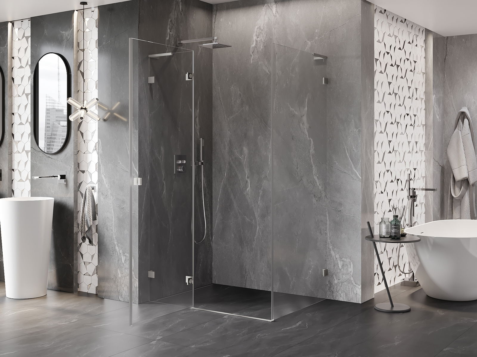 Poręczny i wygodny uchwyt został wykonany z trwałego i odpornego metalu. Modny kształt w połączeniu z wykończeniem dopasowanym do koloru profili nadaje całości nowoczesnego i stylowego wyglądu, podkreślając estetykę każdej łazienki.