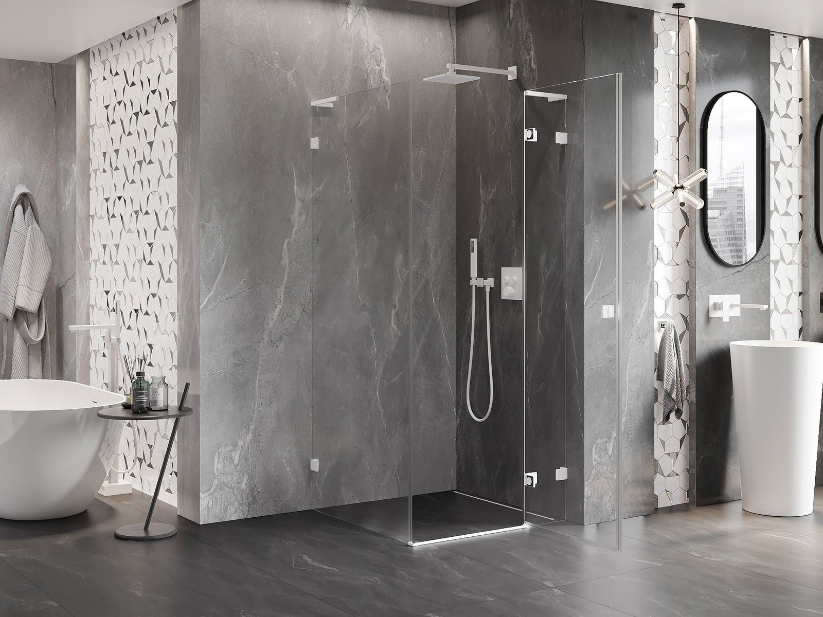 Klamry i zawiasy zostały wykonane z bardzo trwałego mosiądzu, a dodatkowo tworzą zlicowaną taflę szkła. Jest to doskonały wybór, który łączy elegancję, trwałość i nowoczesny design. Dzięki takim rozwiązaniom prysznic zyskuje na estetyce, a jednocześnie ułatwiają utrzymanie czystości.