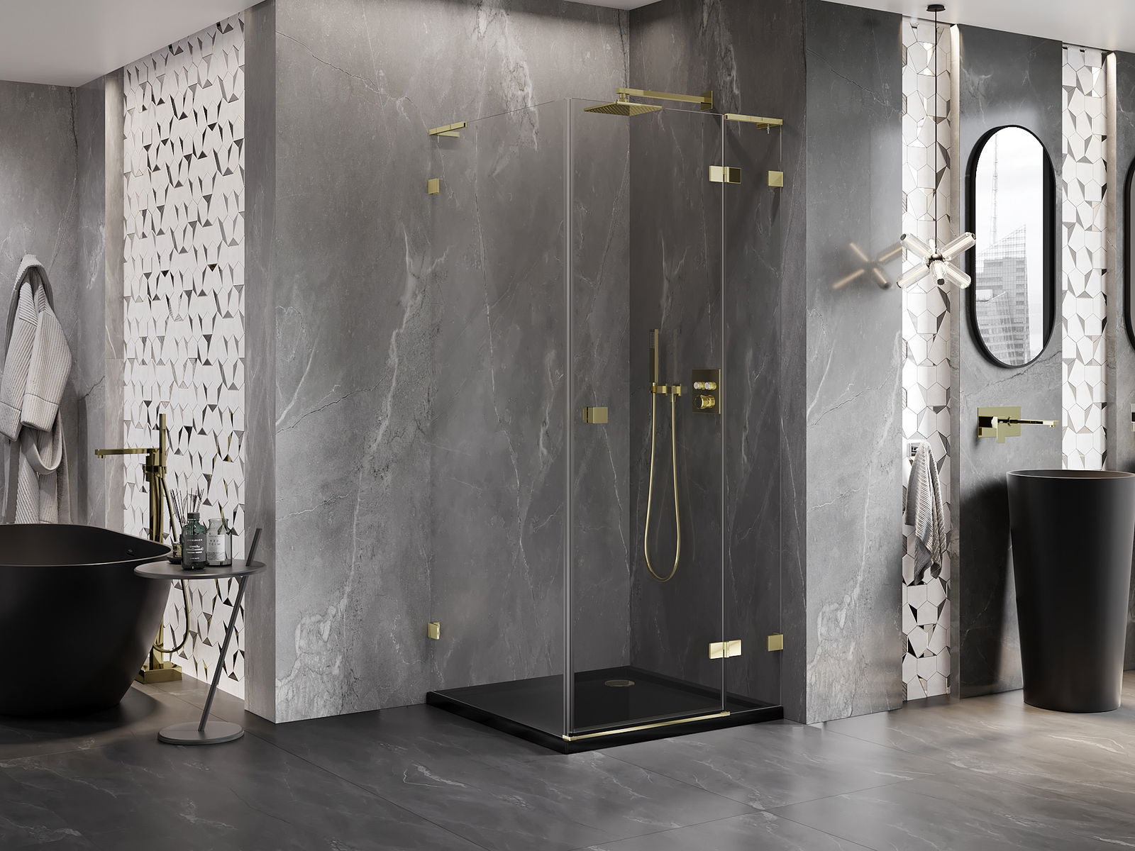 Mexen Lunar L kabina prysznicowa uchylna prawa 90 x 90 cm, transparent, złota - 834L-090-090-50-00-P