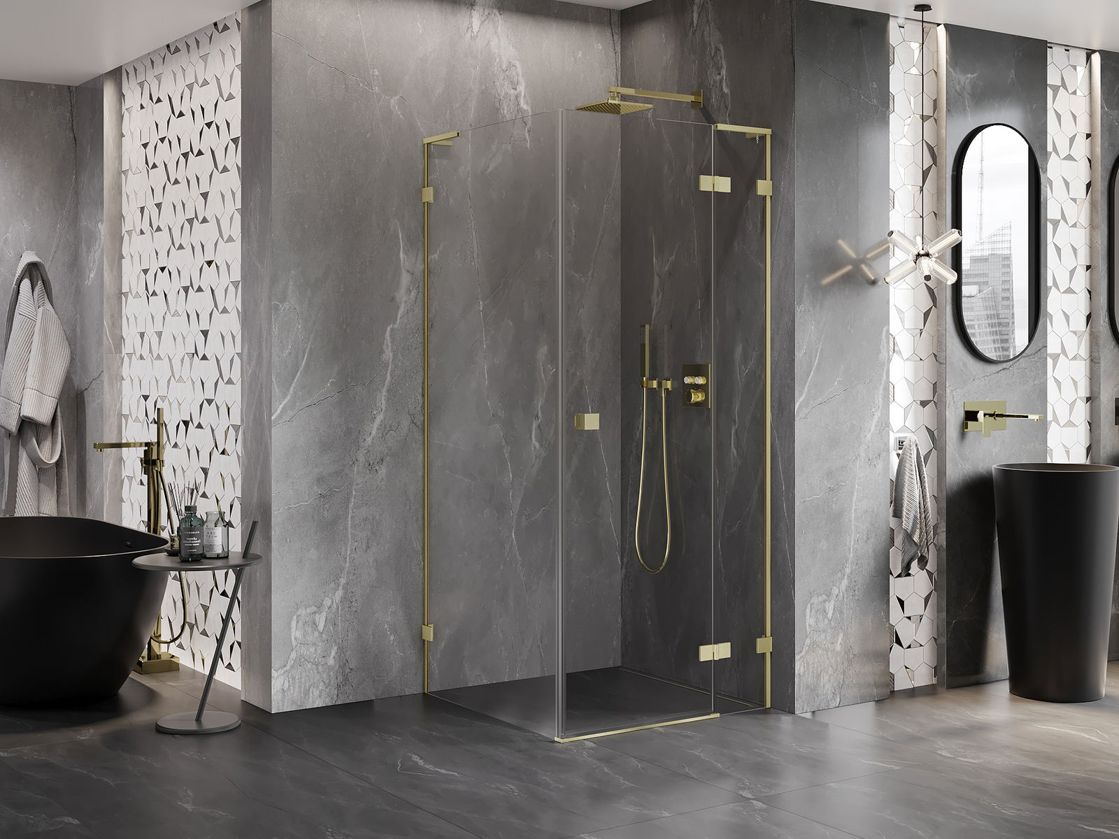 Klamry i zawiasy zostały wykonane z bardzo trwałego mosiądzu, a dodatkowo tworzą zlicowaną taflę szkła. Jest to doskonały wybór, który łączy elegancję, trwałość i nowoczesny design. Dzięki takim rozwiązaniom prysznic zyskuje na estetyce, a jednocześnie ułatwiają utrzymanie czystości.