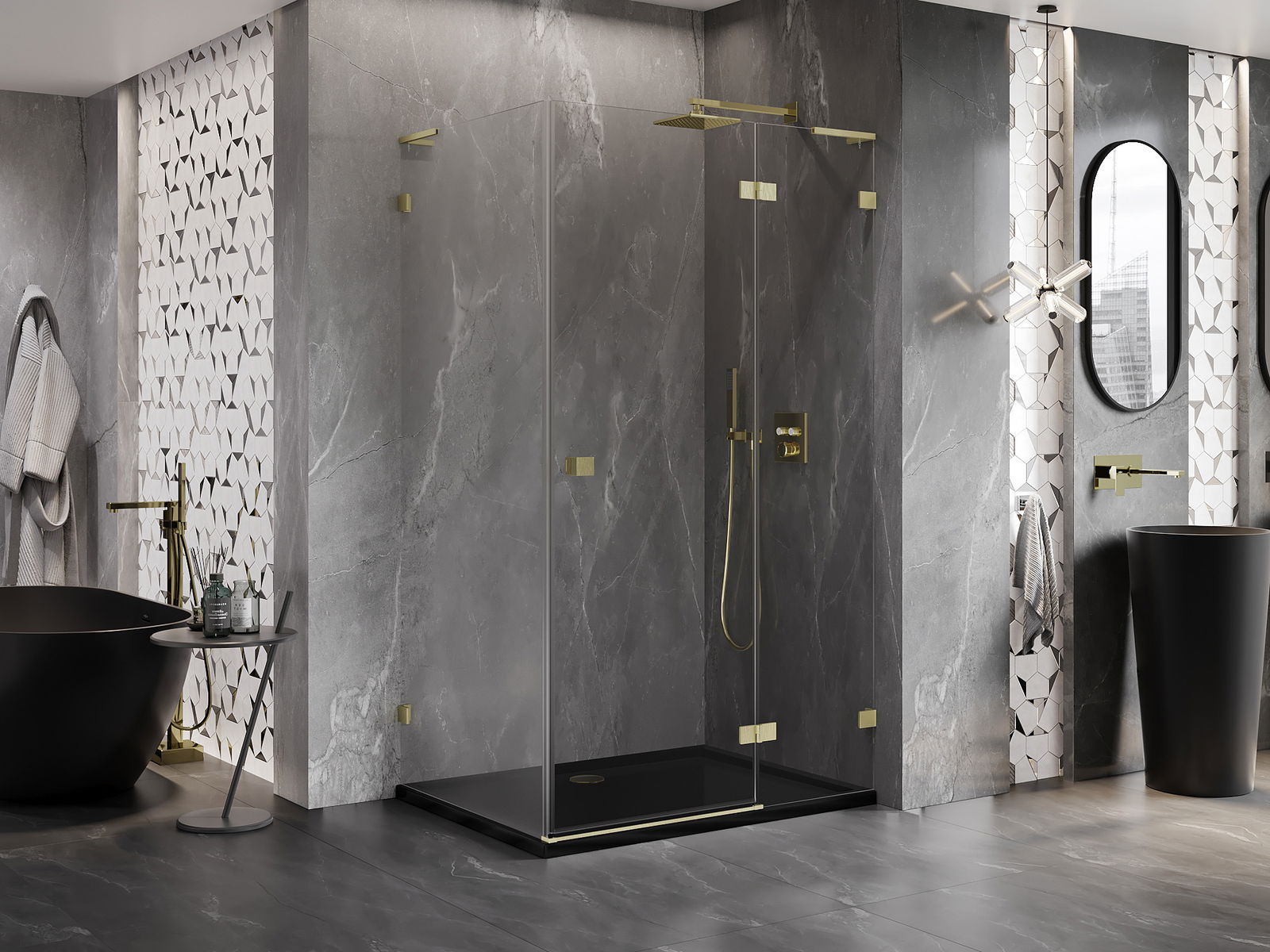 Klamry i zawiasy zostały wykonane z bardzo trwałego mosiądzu, a dodatkowo tworzą zlicowaną taflę szkła. Jest to doskonały wybór, który łączy elegancję, trwałość i nowoczesny design. Dzięki takim rozwiązaniom prysznic zyskuje na estetyce, a jednocześnie ułatwiają utrzymanie czystości.