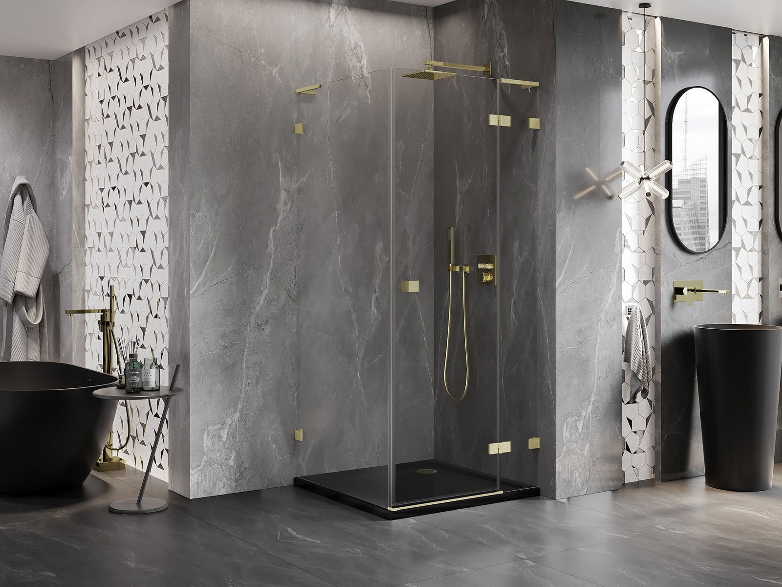 Mexen Lunar L kabina prysznicowa uchylna prawa 90 x 90 cm, transparent, złota szczotkowana - 834L-090-090-55-00-P