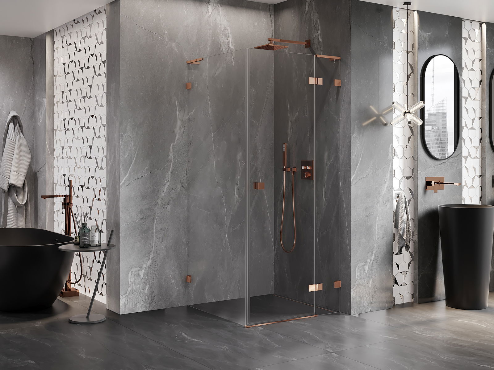 Poręczny i wygodny uchwyt został wykonany z trwałego i odpornego metalu. Modny kształt w połączeniu z wykończeniem dopasowanym do koloru profili nadaje całości nowoczesnego i stylowego wyglądu, podkreślając estetykę każdej łazienki.