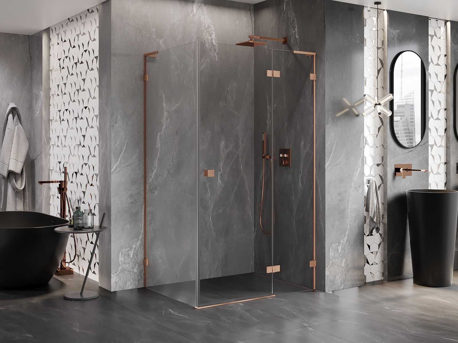 Mexen Lunar L kabina prysznicowa uchylna prawa 90 x 70 cm, transparent, miedź szczotkowana - 834L-090-070-65-00-P