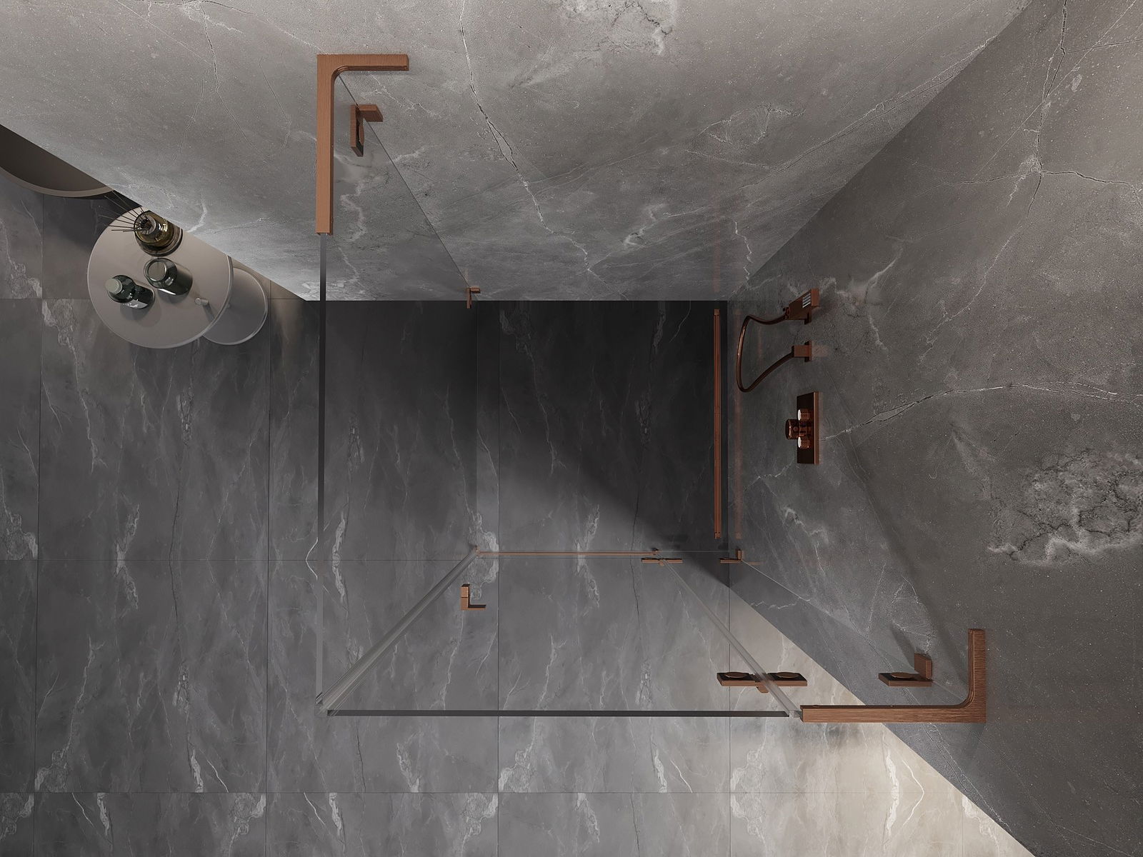 Mexen Lunar L kabina prysznicowa uchylna prawa 80 x 80 cm, transparent, miedź szczotkowana - 834L-080-080-65-00-P