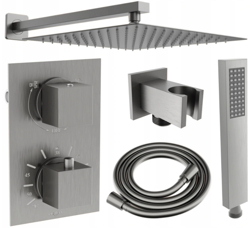 Mexen Cube DR02 zestaw prysznicowy podtynkowy z deszczownica 30 cm, grafit - 77502DR0230-66