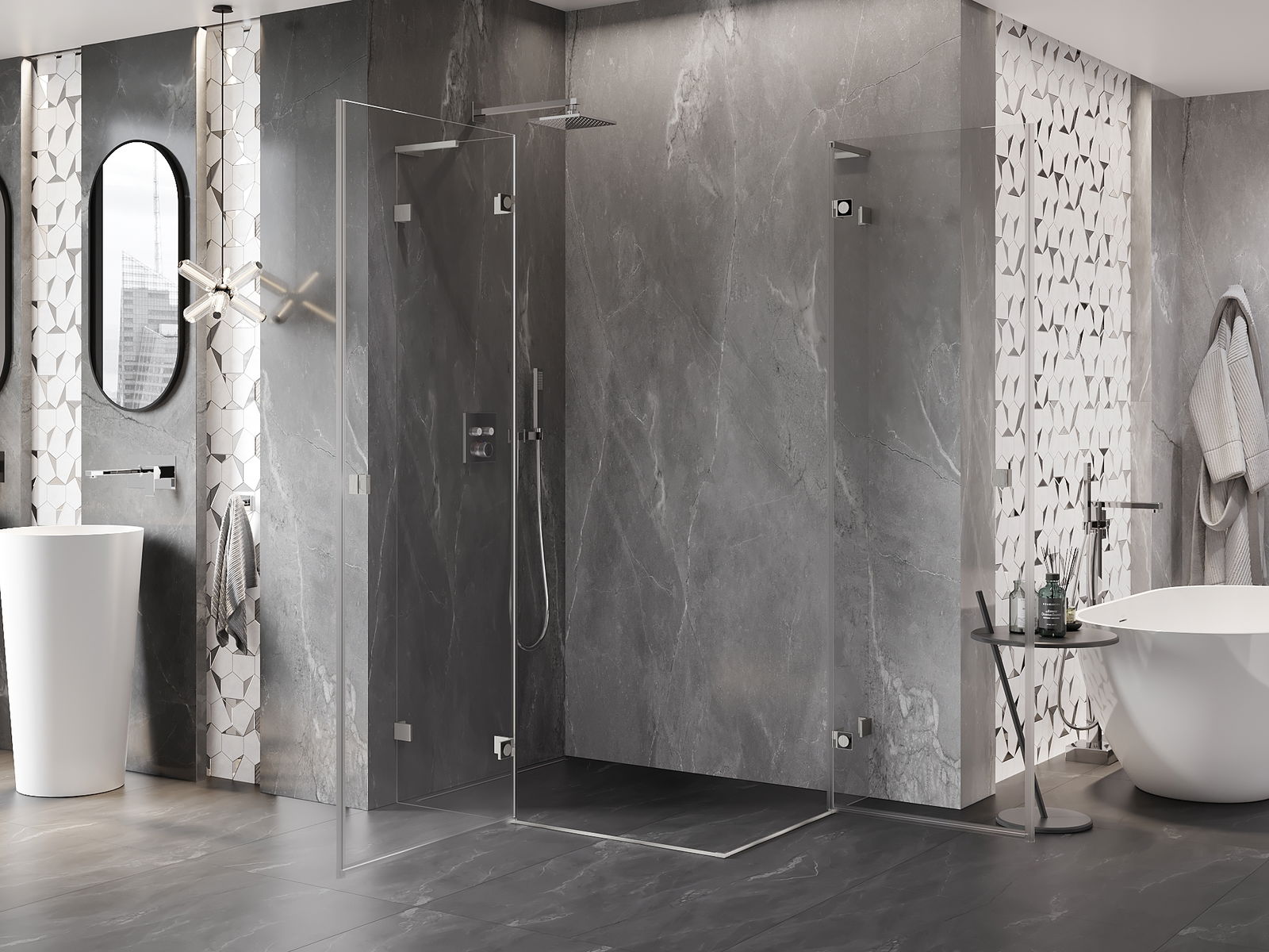 Klamry i zawiasy zostały wykonane z bardzo trwałego mosiądzu, a dodatkowo tworzą zlicowaną taflę szkła. Jest to doskonały wybór, który łączy elegancję, trwałość i nowoczesny design. Dzięki takim rozwiązaniom prysznic zyskuje na estetyce, a jednocześnie ułatwiają utrzymanie czystości.