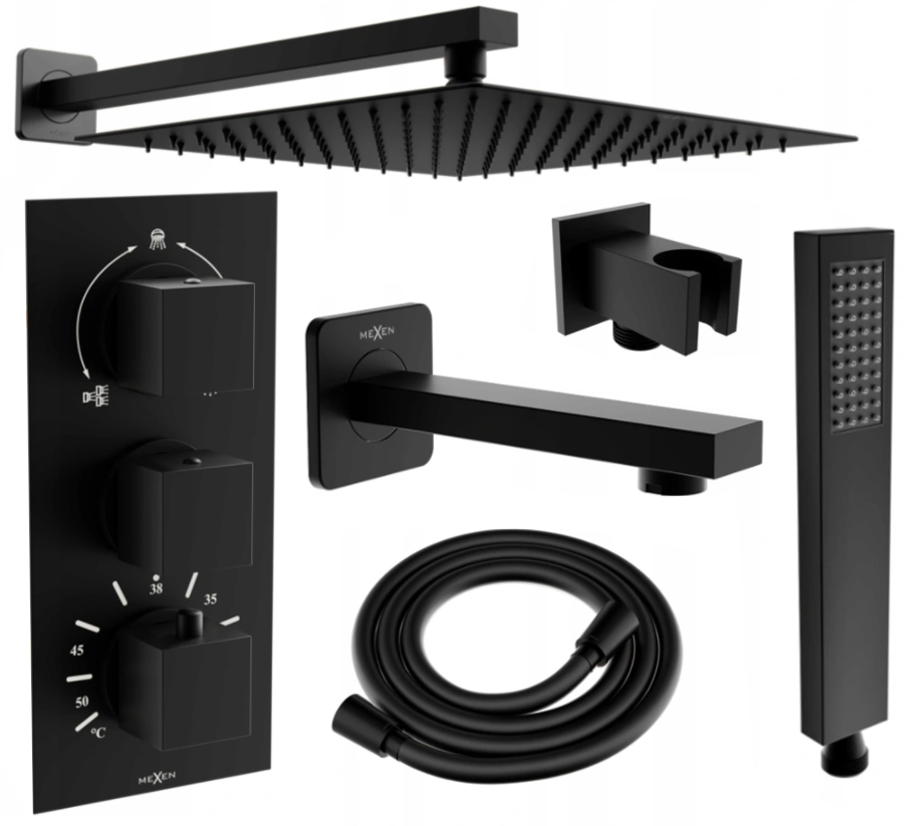 Mexen Cube DR02 zestaw wannowo-prysznicowy podtynkowy z deszczownicą 30 cm, czarny - 77503DR0230-70