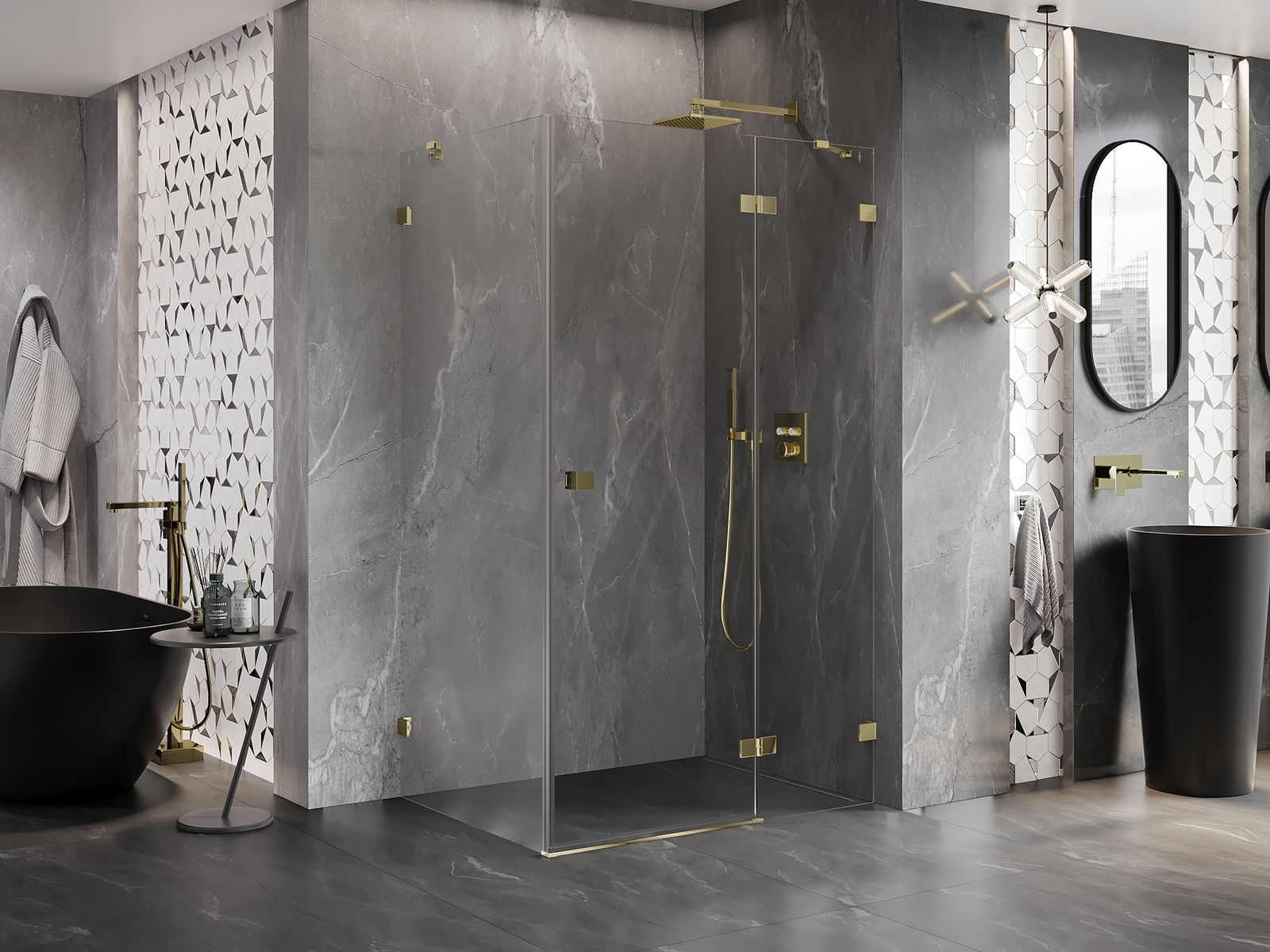 Klamry i zawiasy zostały wykonane z bardzo trwałego mosiądzu, a dodatkowo tworzą zlicowaną taflę szkła. Jest to doskonały wybór, który łączy elegancję, trwałość i nowoczesny design. Dzięki takim rozwiązaniom prysznic zyskuje na estetyce, a jednocześnie ułatwiają utrzymanie czystości.