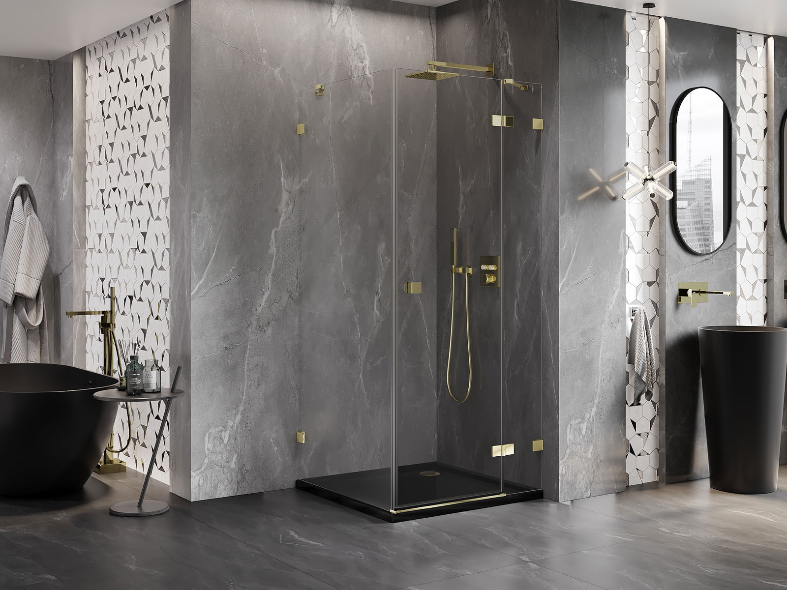 Mexen Lunar kabina prysznicowa uchylna prawa 90 x 90 cm, transparent, złota - 834-090-090-50-00-P
