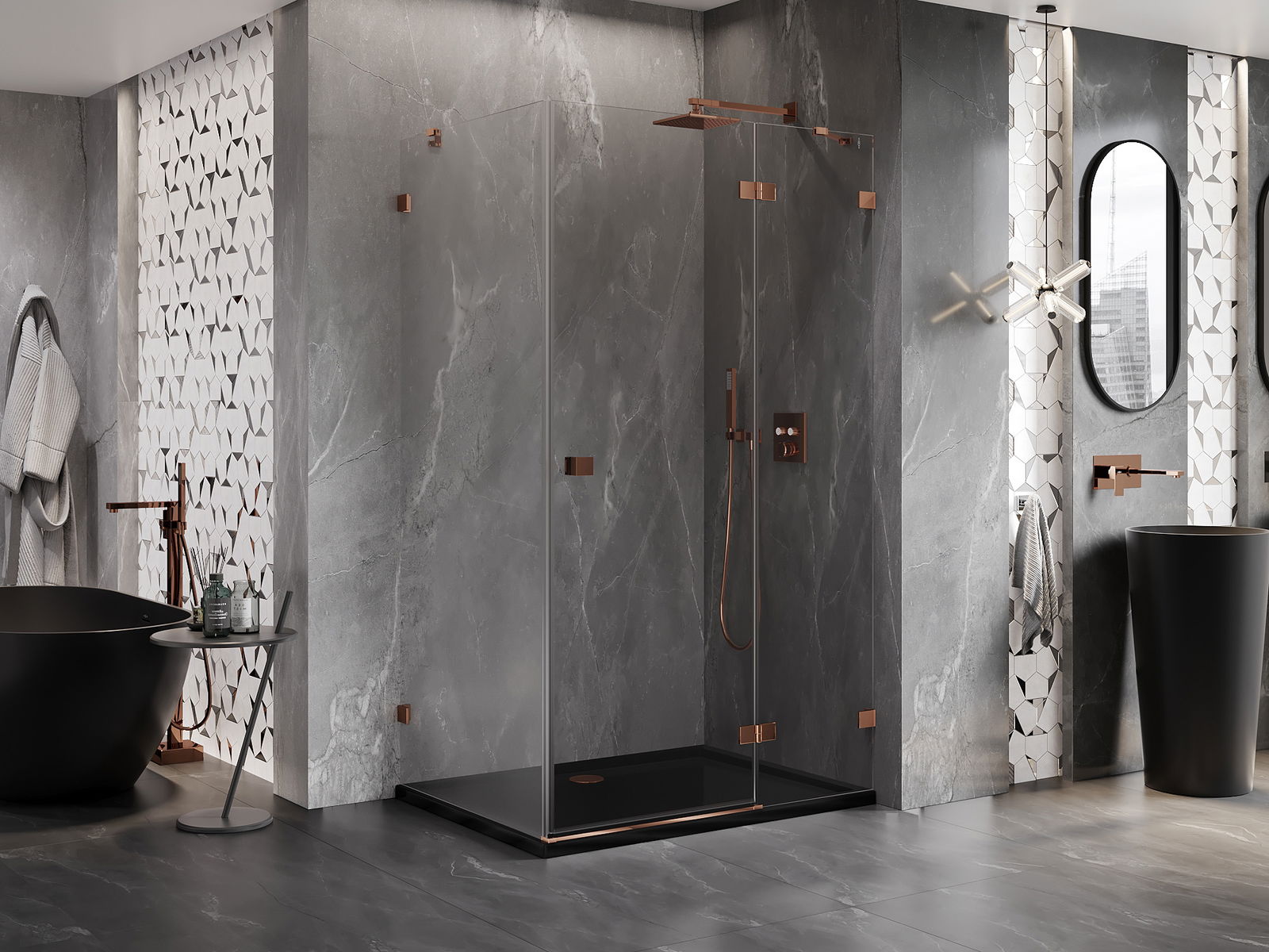 Klamry i zawiasy zostały wykonane z bardzo trwałego mosiądzu, a dodatkowo tworzą zlicowaną taflę szkła. Jest to doskonały wybór, który łączy elegancję, trwałość i nowoczesny design. Dzięki takim rozwiązaniom prysznic zyskuje na estetyce, a jednocześnie ułatwiają utrzymanie czystości.