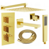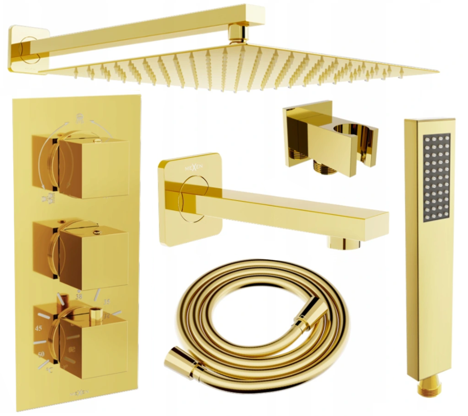 Mexen Cube DR02 zestaw wannowo-prysznicowy podtynkowy z deszczownicą 25 cm, złoty - 77503DR0225-50